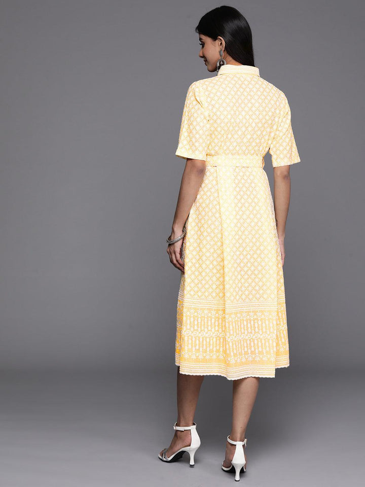 Yellow Printed Cotton Shirt Dress - ShopLibas