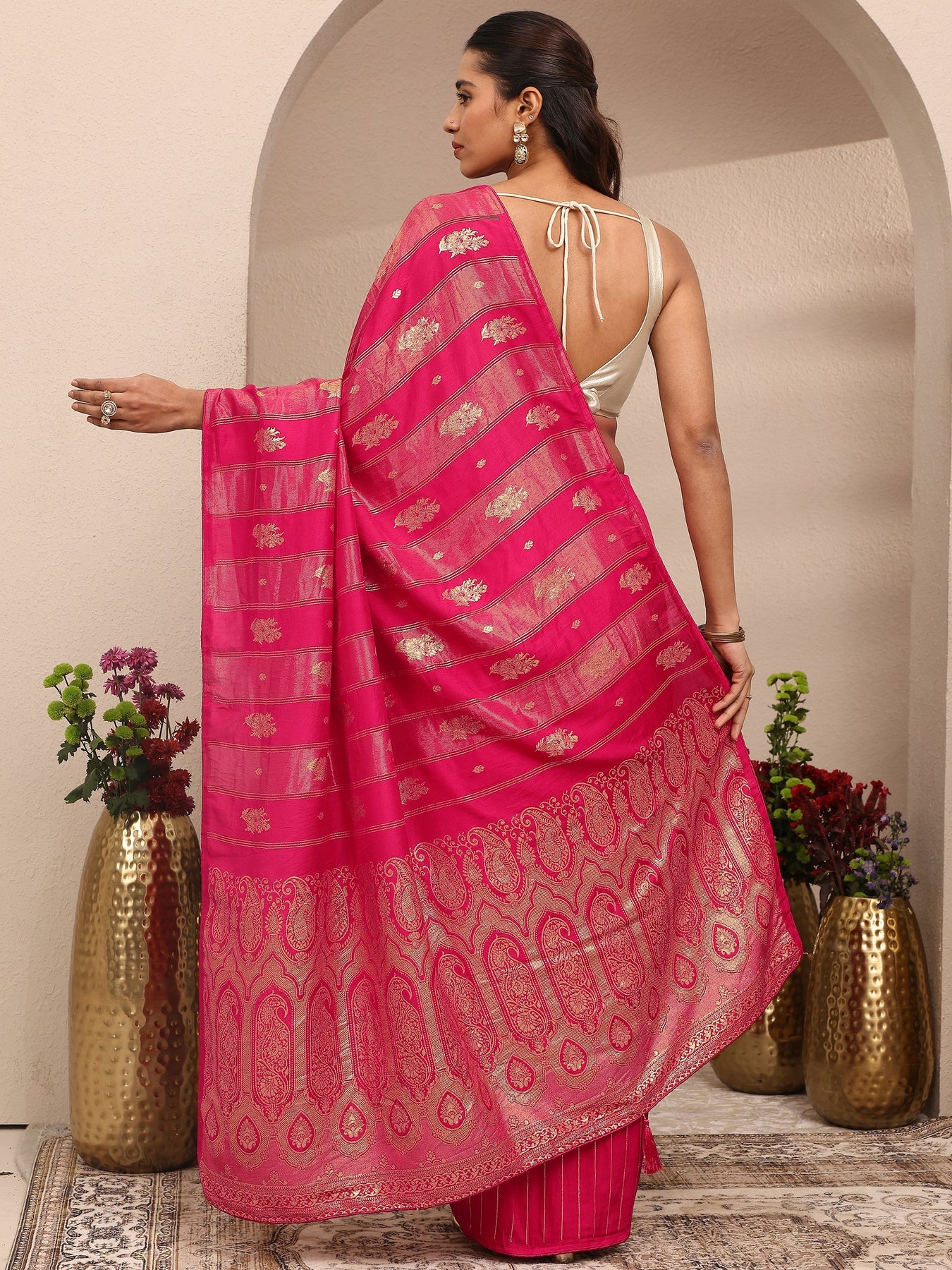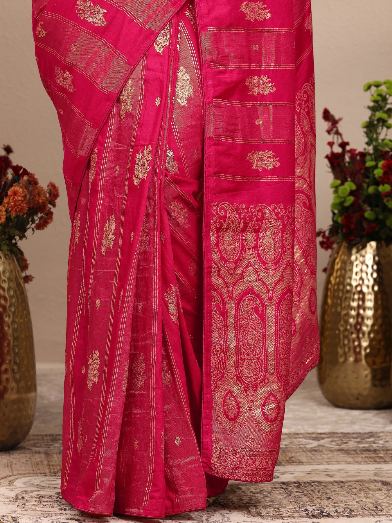 Pink Woven Design Banarsi Silk Blend Saree With Unstitched Blouse Piece