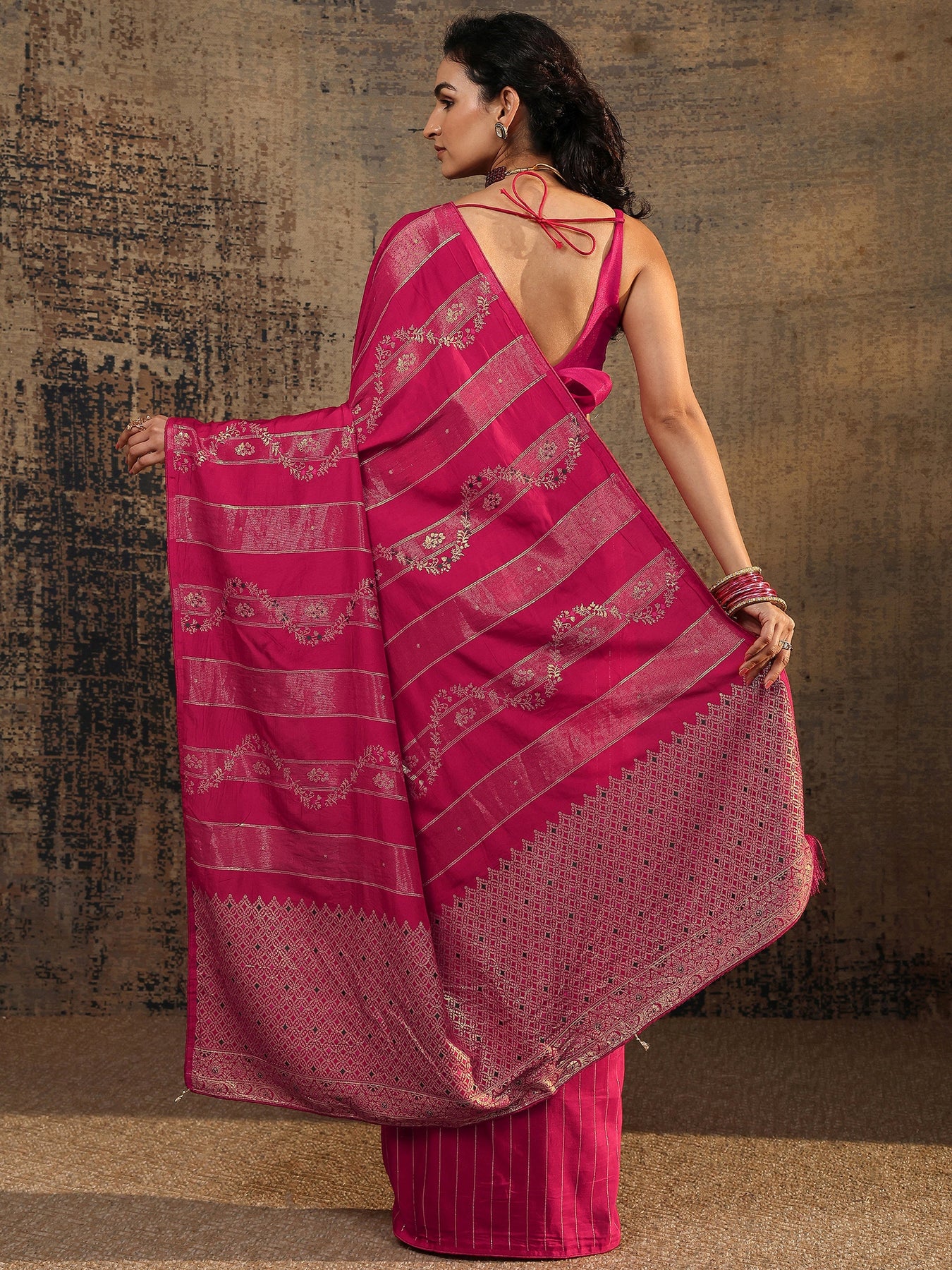Pink Woven Design Silk Blend Banarasi Saree With Unstitched Blouse Piece