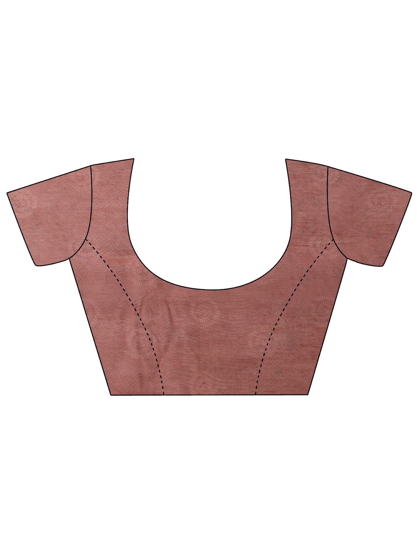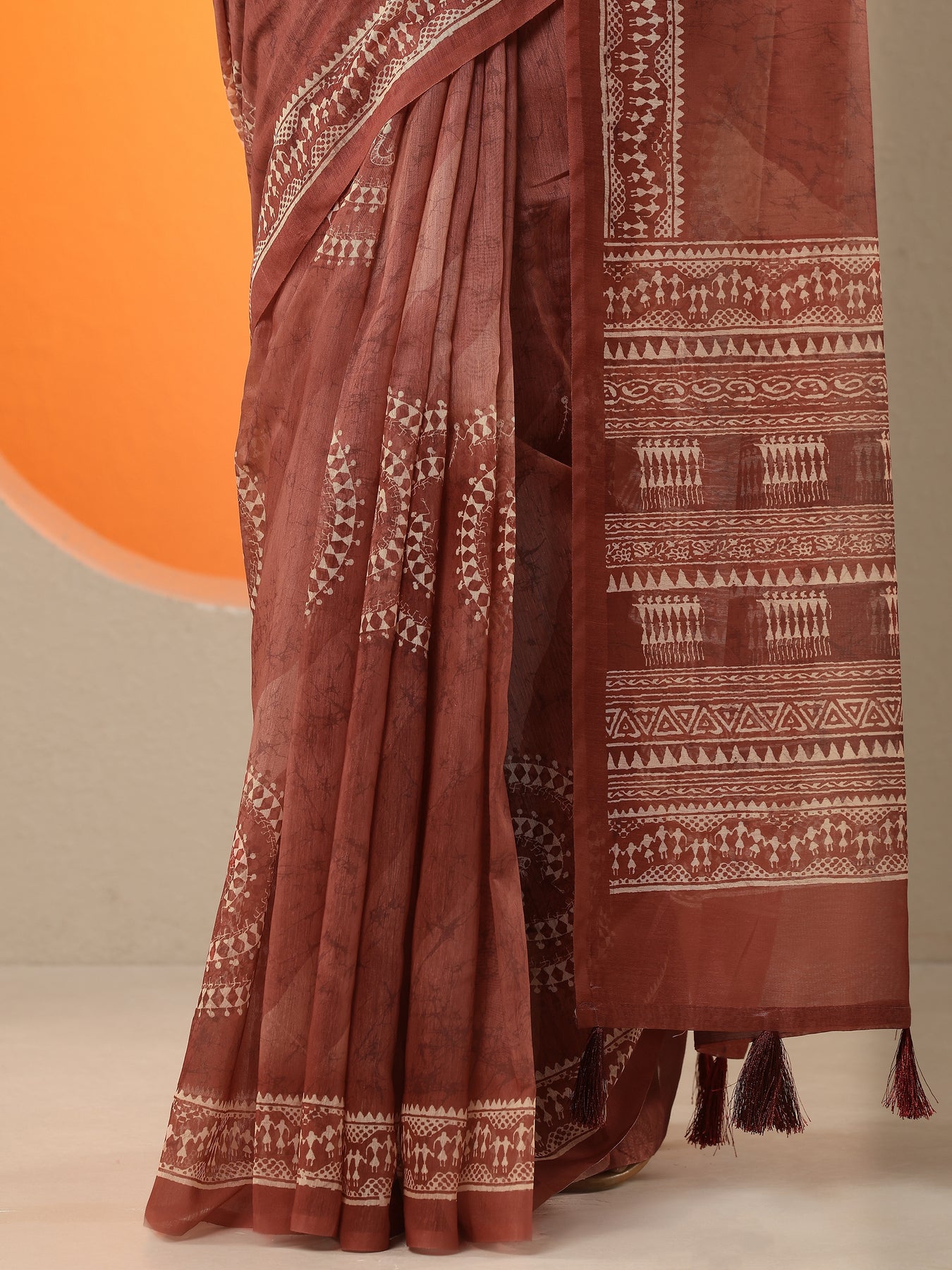 Brown Printed Silk Blend Saree With Unstitched Blouse Piece