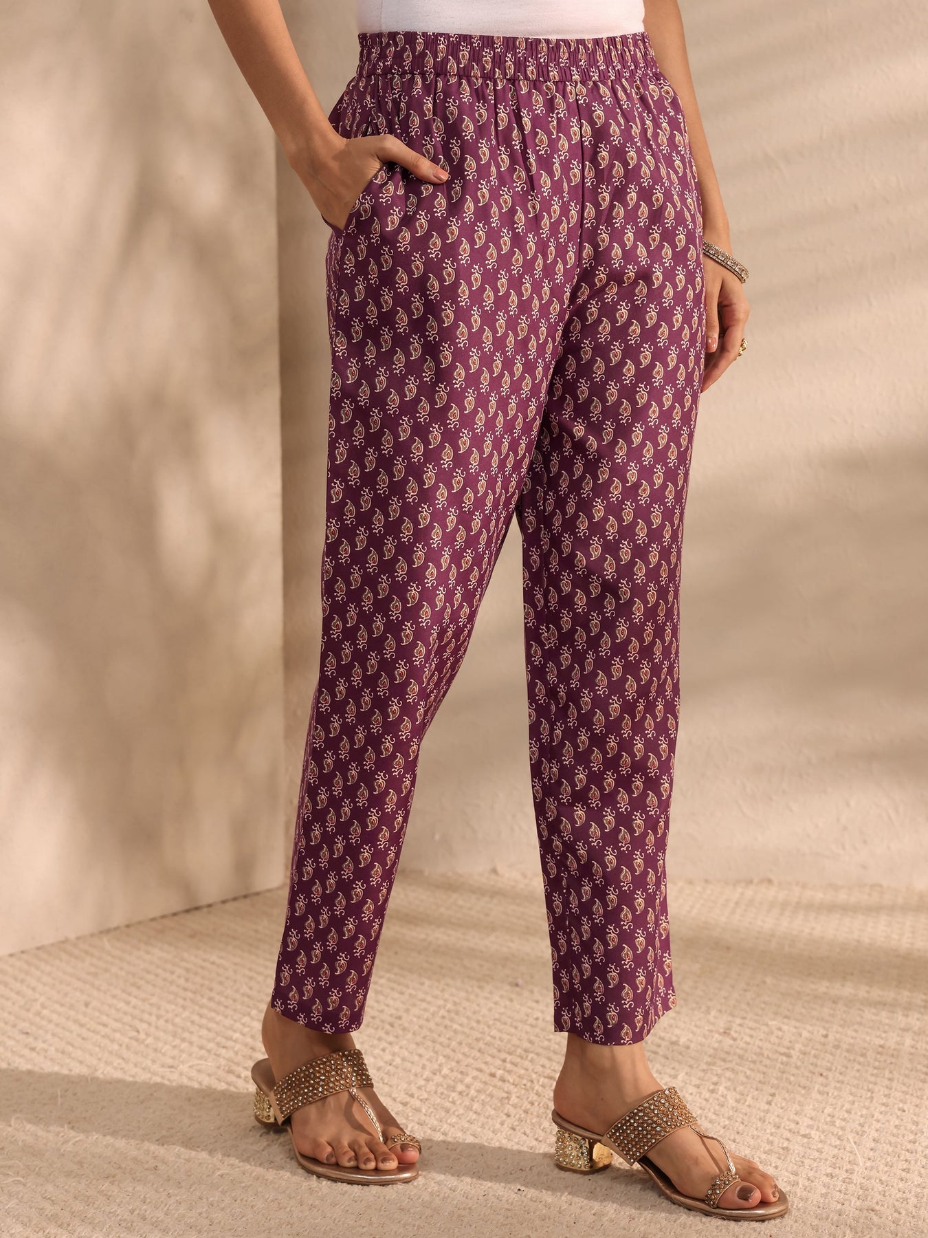 Our 3-piece purple cotton straight-fit kurta set features a round neckline, regular sleeves, and a statement yoke. Complemented with straight pants with a partially elasticated waistband, and a printed dupatta. Adorned with intricate ethnic prints and mirror work accents, this style is perfect for festive occasions.