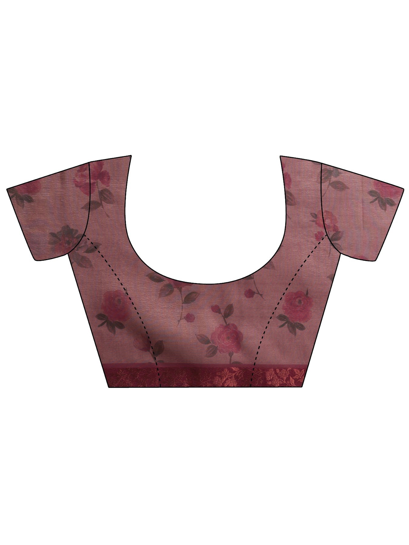 Gold Printed Chinon Saree With Unstitched Blouse Piece