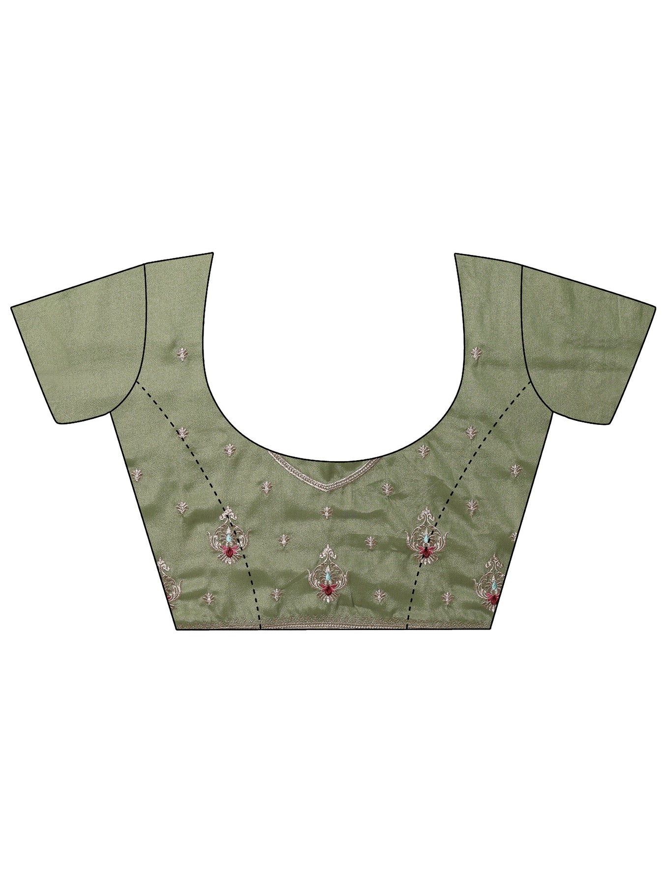 Green Embroidered Chinon Saree With Unstitched Blouse Piece