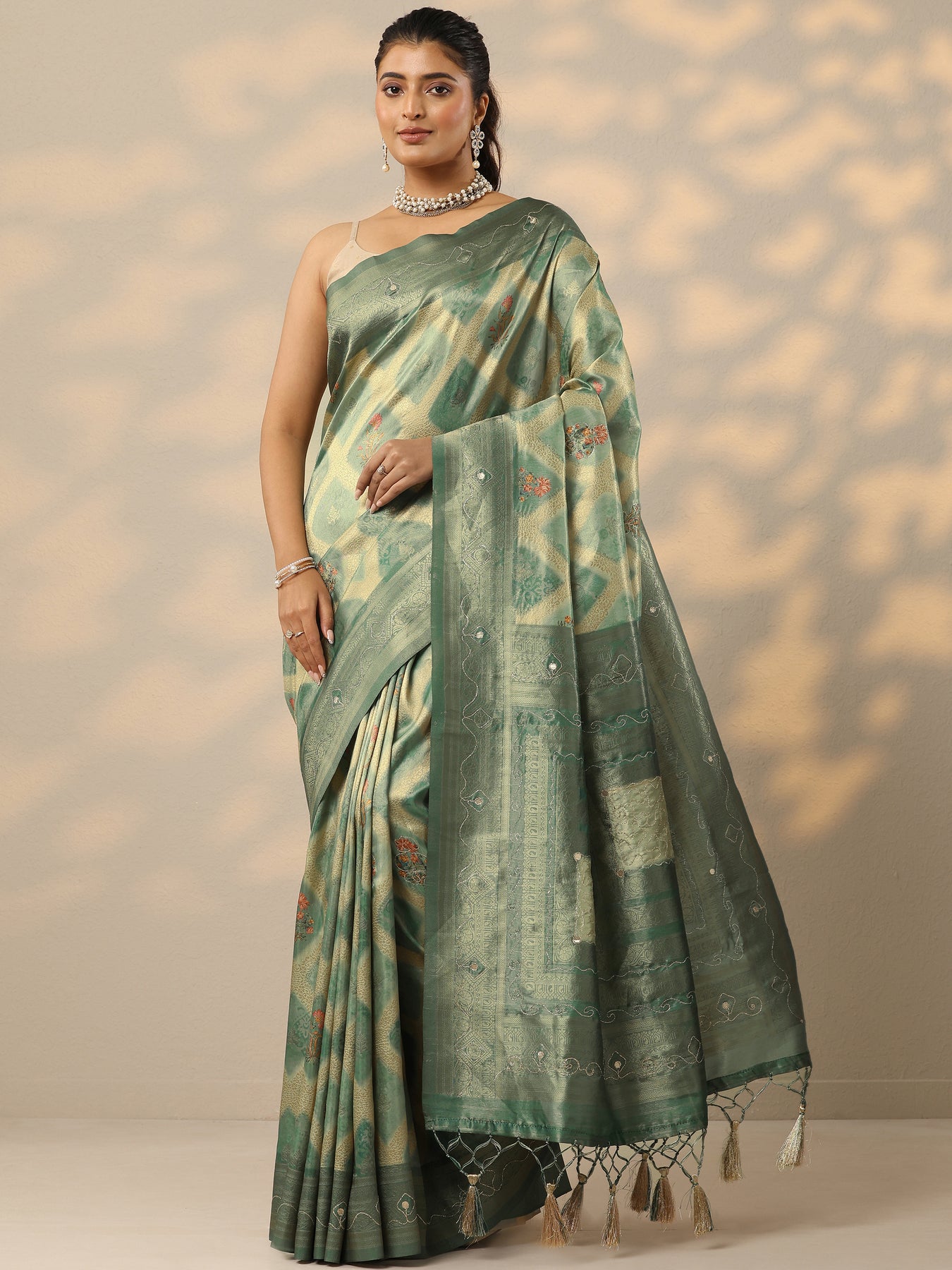 Green Woven Design Silk Blend Saree With Unstitched Blouse Piece
