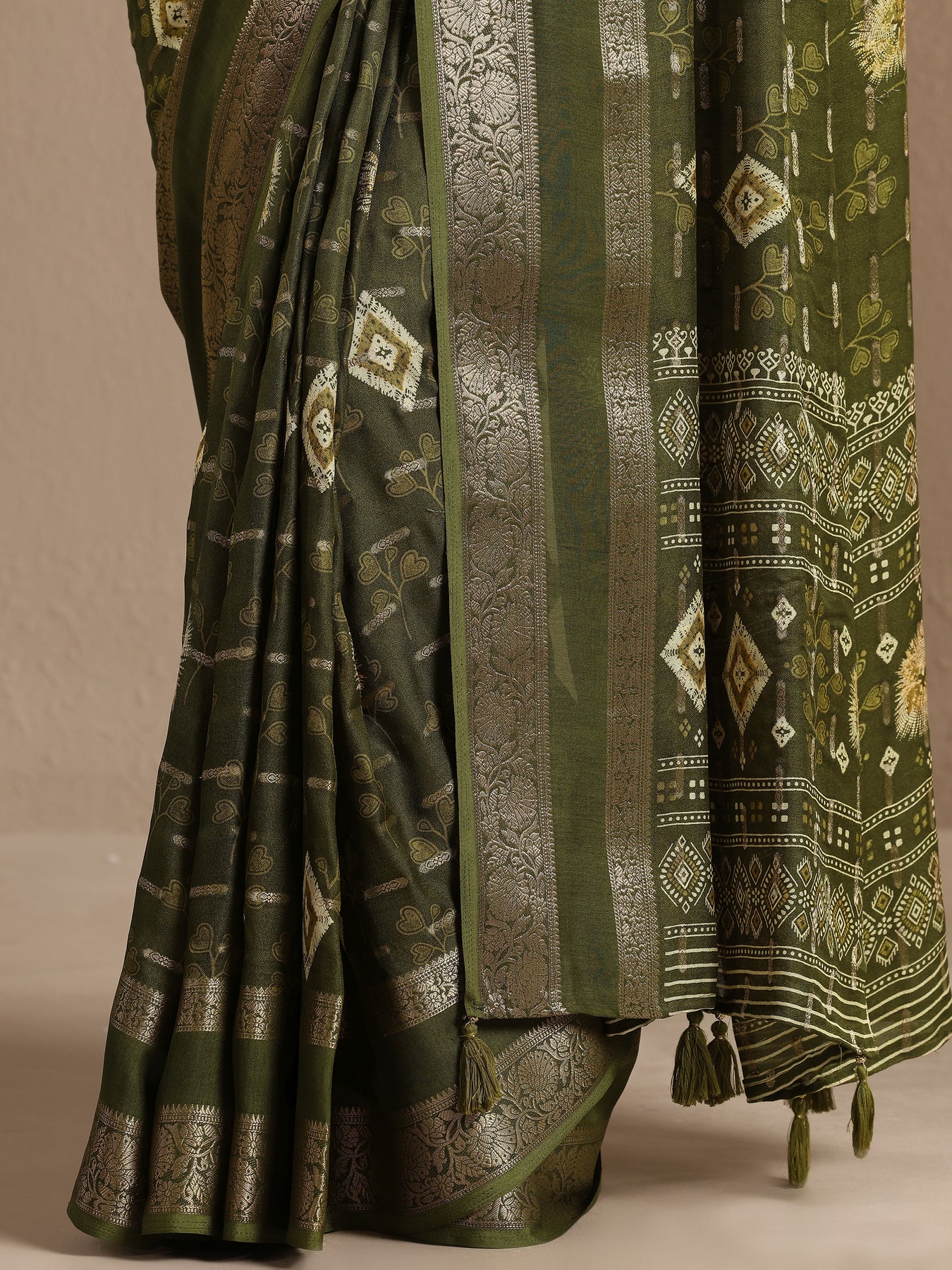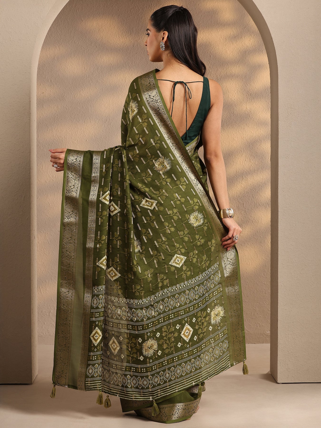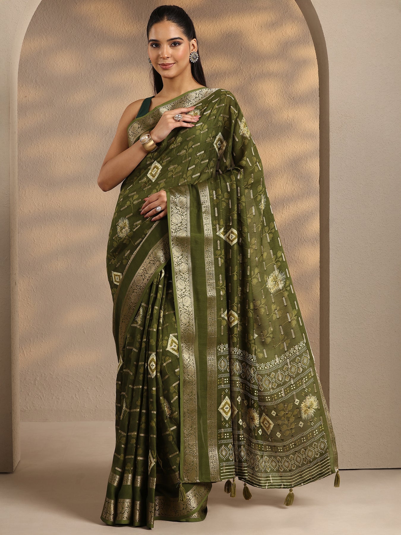 Green Woven Design Silk Blend Saree With Unstitched Blouse Piece