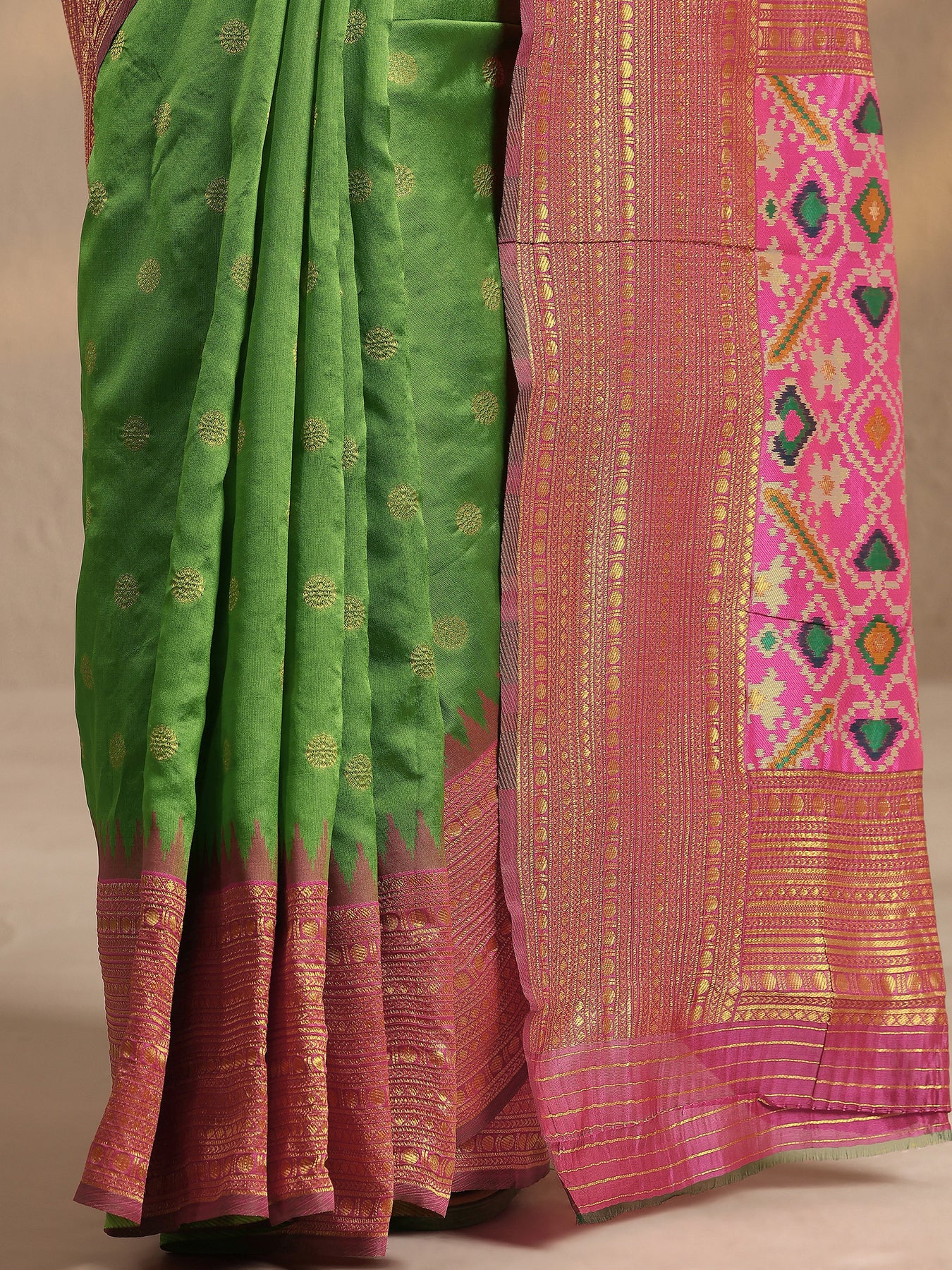 Green Woven Design Silk Blend Saree With Unstitched Blouse Piece