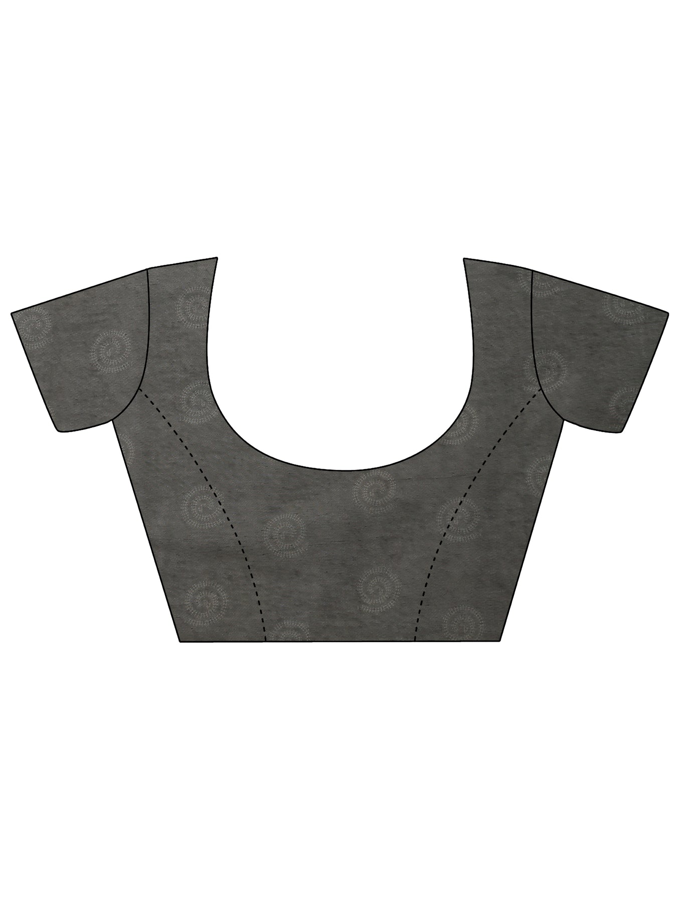 Grey Printed Silk Blend Saree With Unstitched Blouse Piece