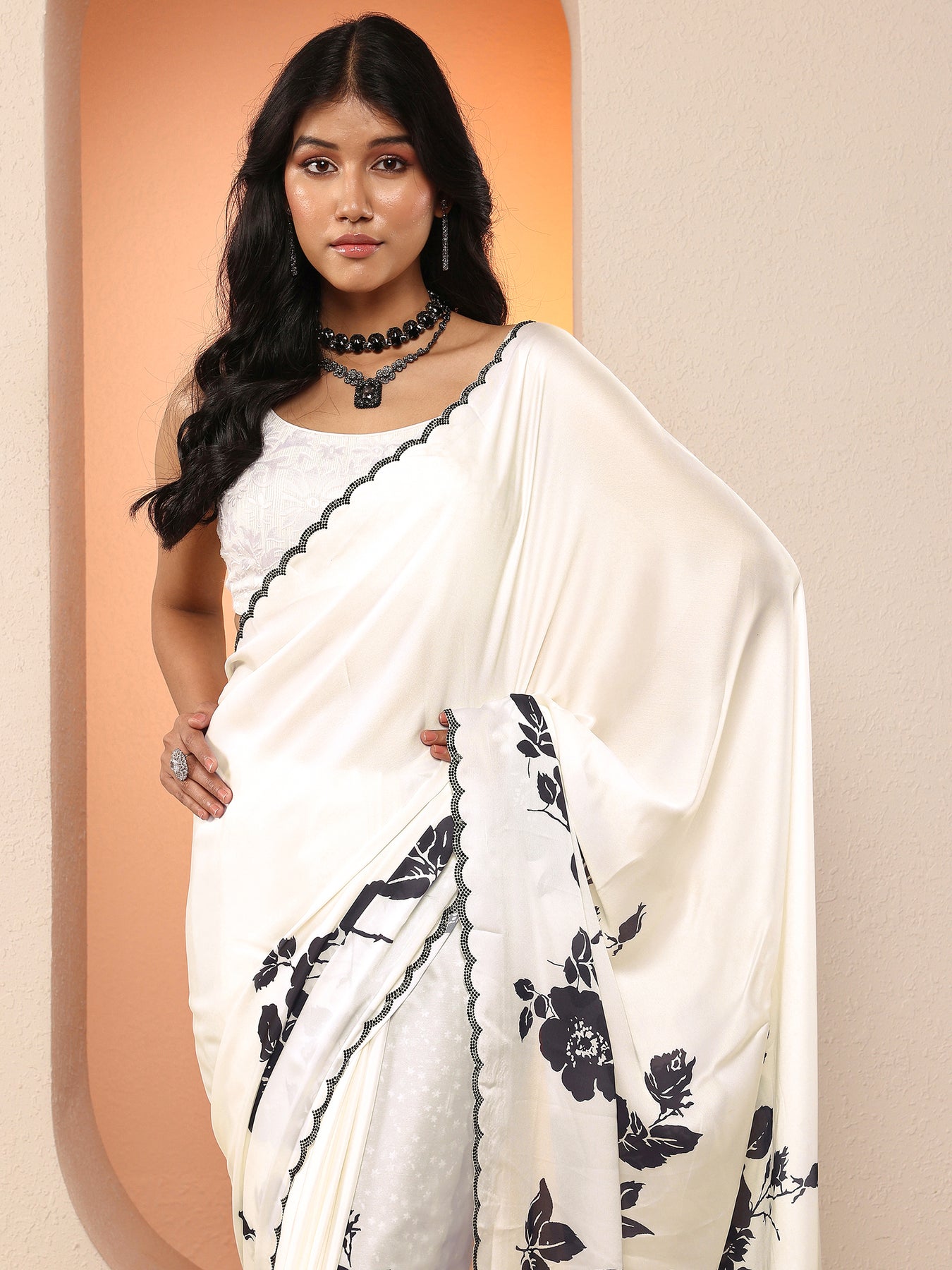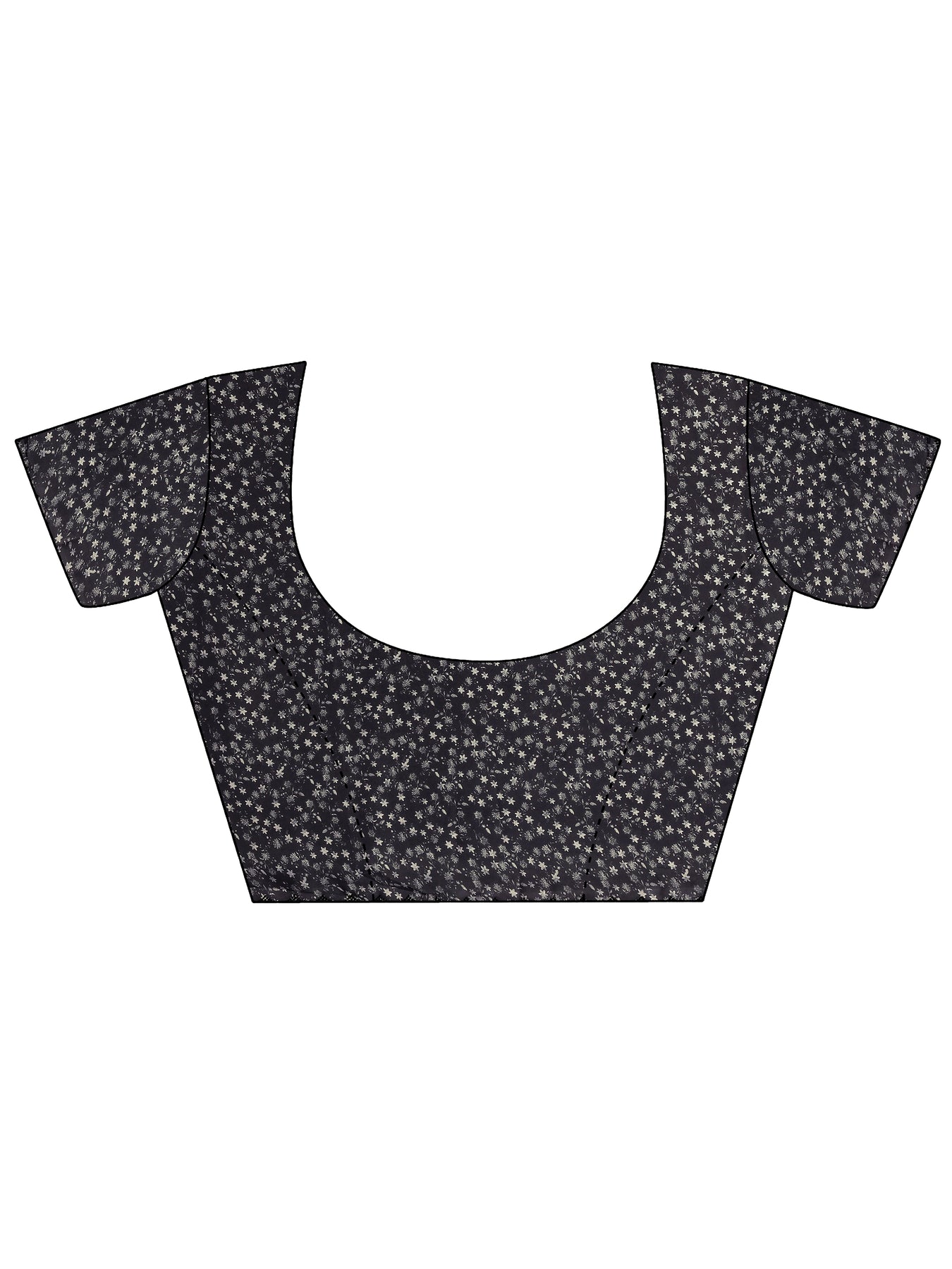 Grey Printed Silk Blend Saree With Unstitched Blouse Piece