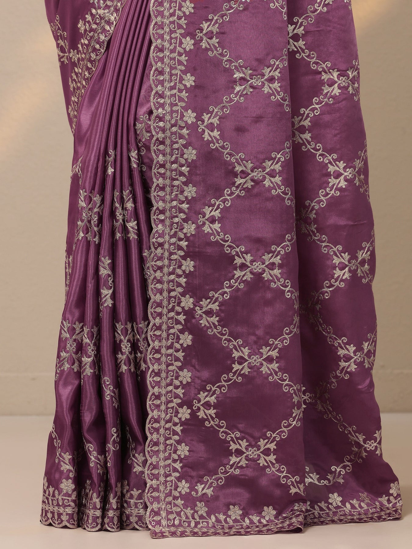 Mauve Embroidered Silk Blend Saree With Unstitched Blouse Piece