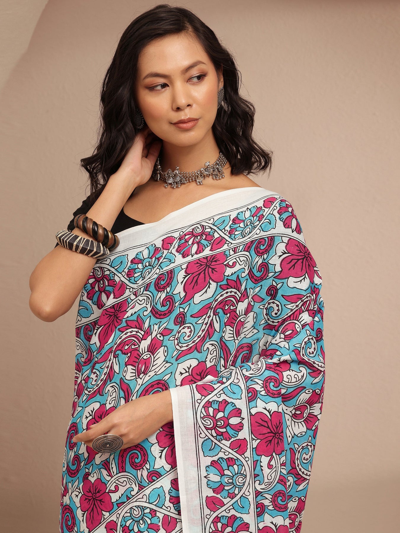 Multi Printed Cotton Saree With Unstitched Blouse Piece