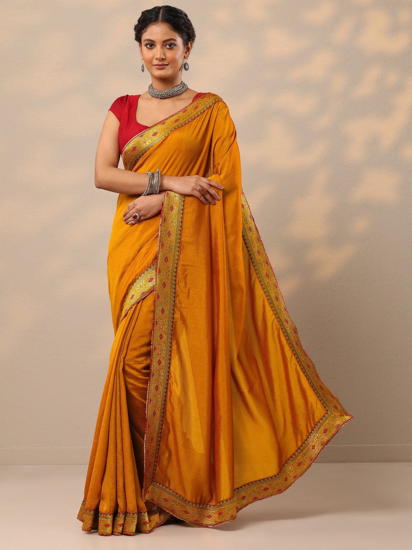 Mustard Solid Silk Blend Saree With Unstitched Blouse Piece