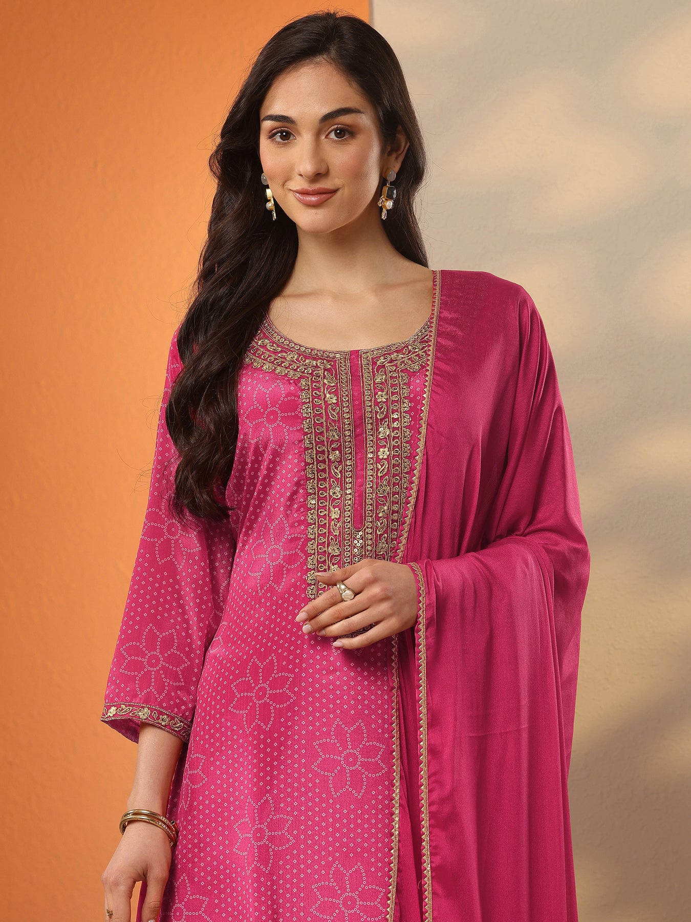 Pink Printed Silk Blend Straight Suit Set With Dupatta