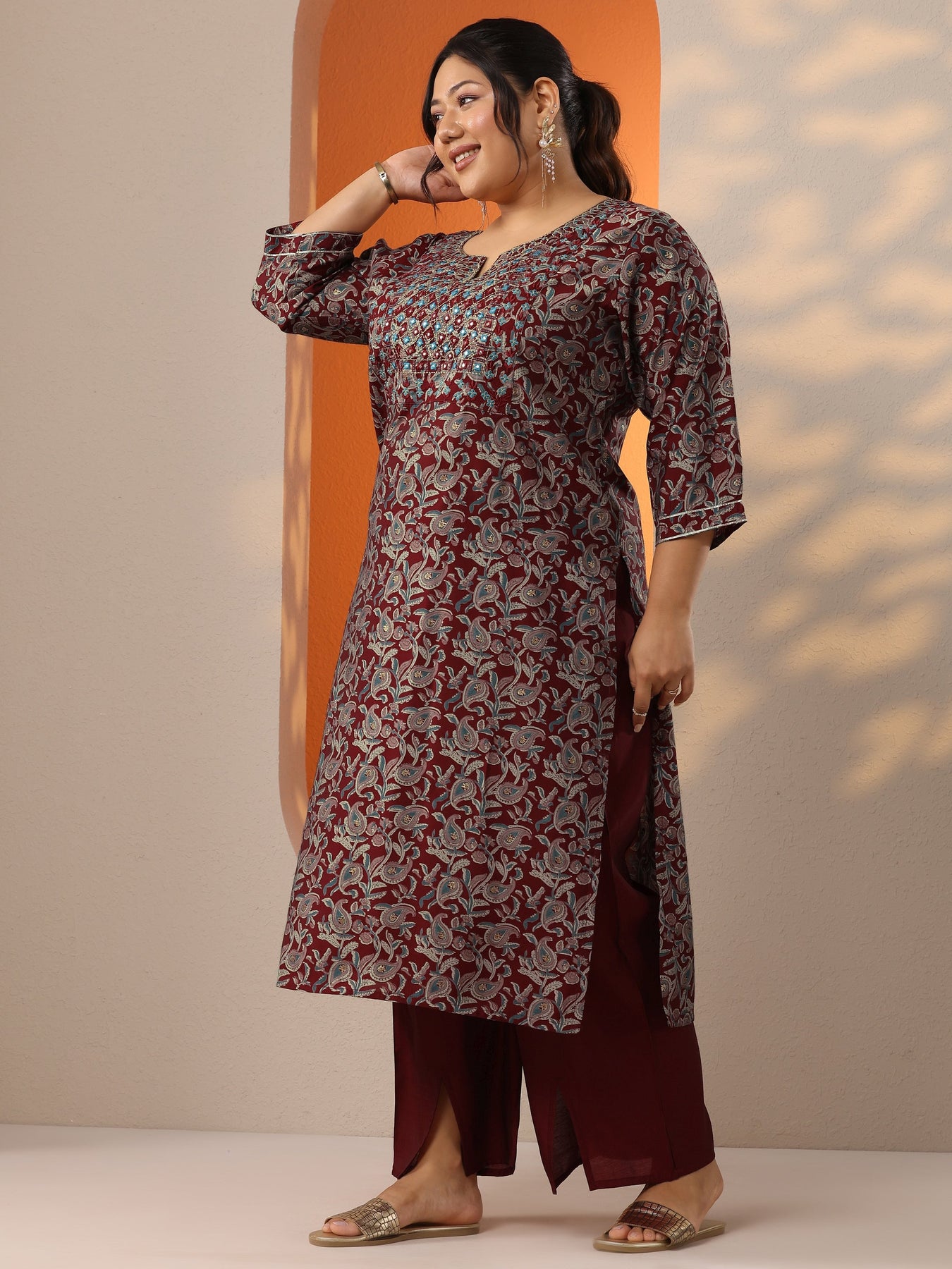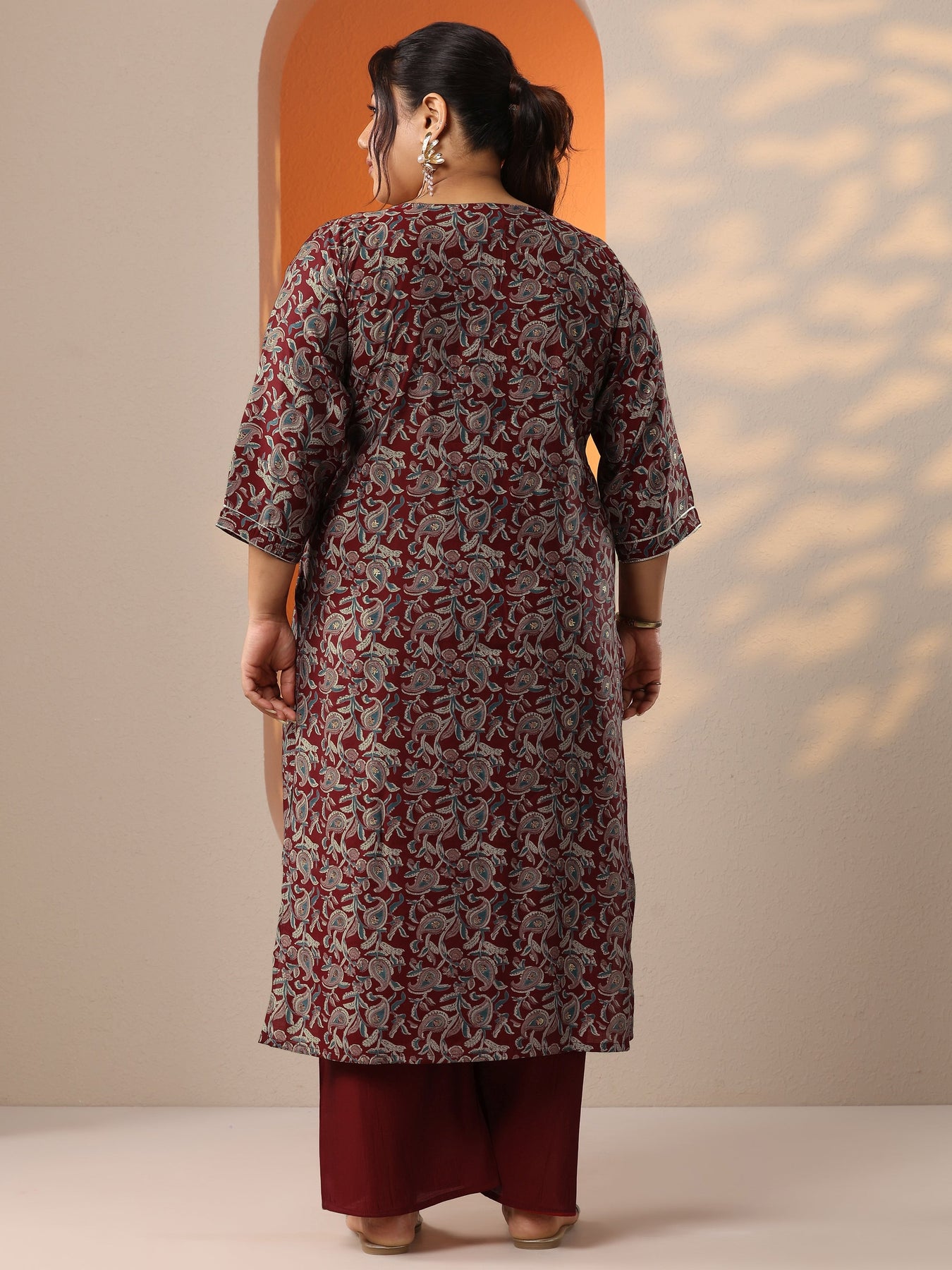 Our 2-piece maroon silk blend straight-fit features a sweetheart neckline, regular sleeves, and statement yoke. Complemented with straight pants with a partially elasticated waistband and 2 pockets. Adorned with floral prints, this style is perfect for dark festive occasions.