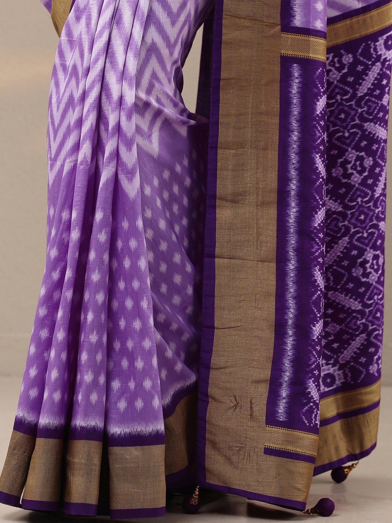 Purple Leheriya Printed Silk Blend Saree With Unstitched Blouse Piece