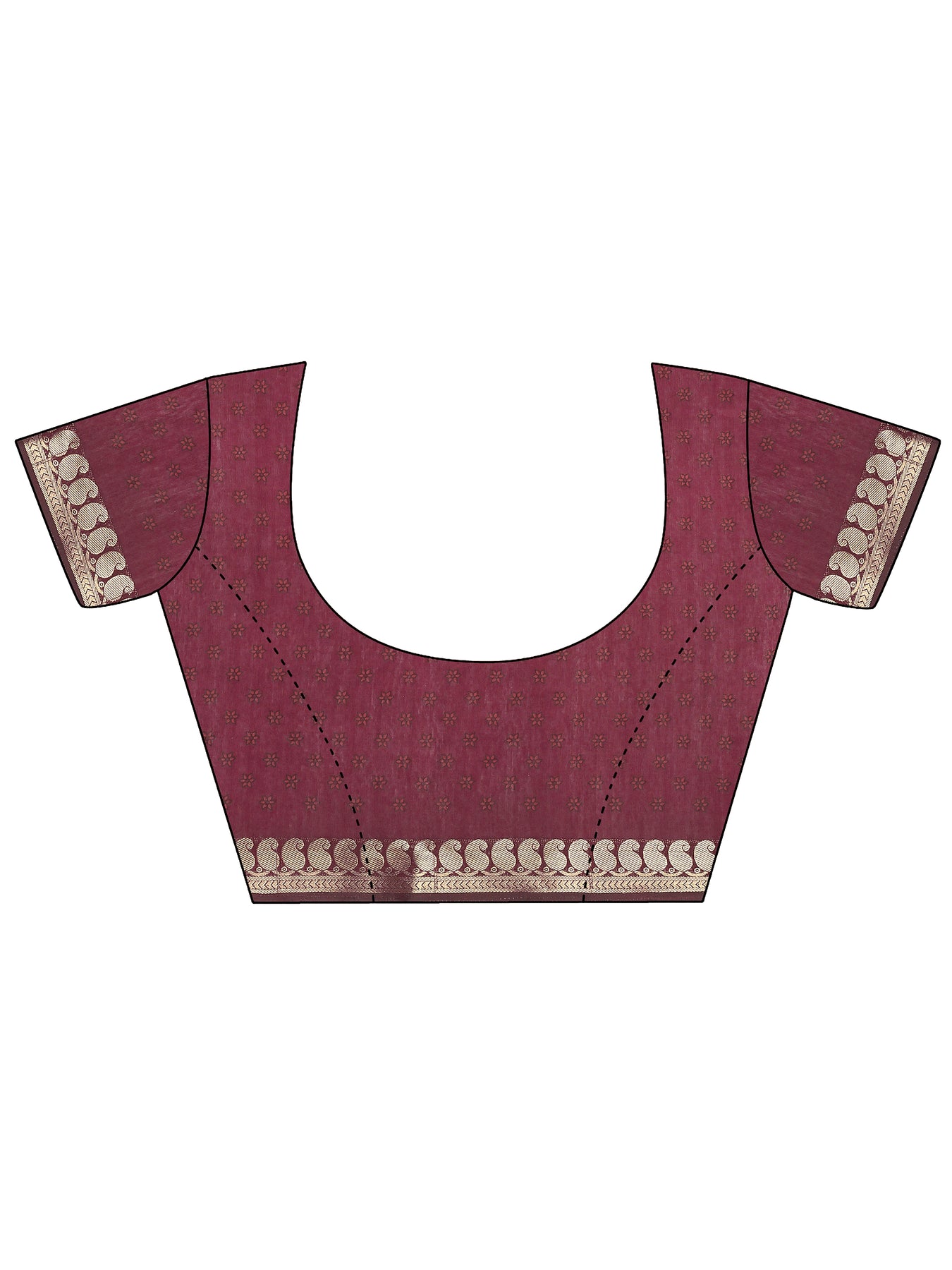 Rust Printed Silk Blend Saree With Unstitched Blouse Piece