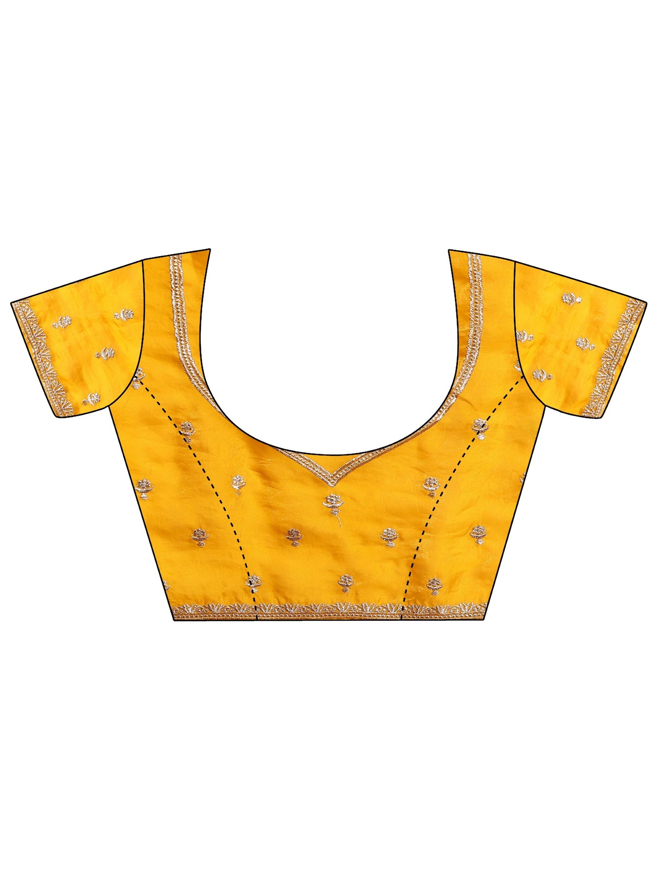 Yellow Embellished Silk Blend Saree With Unstitched Blouse Piece