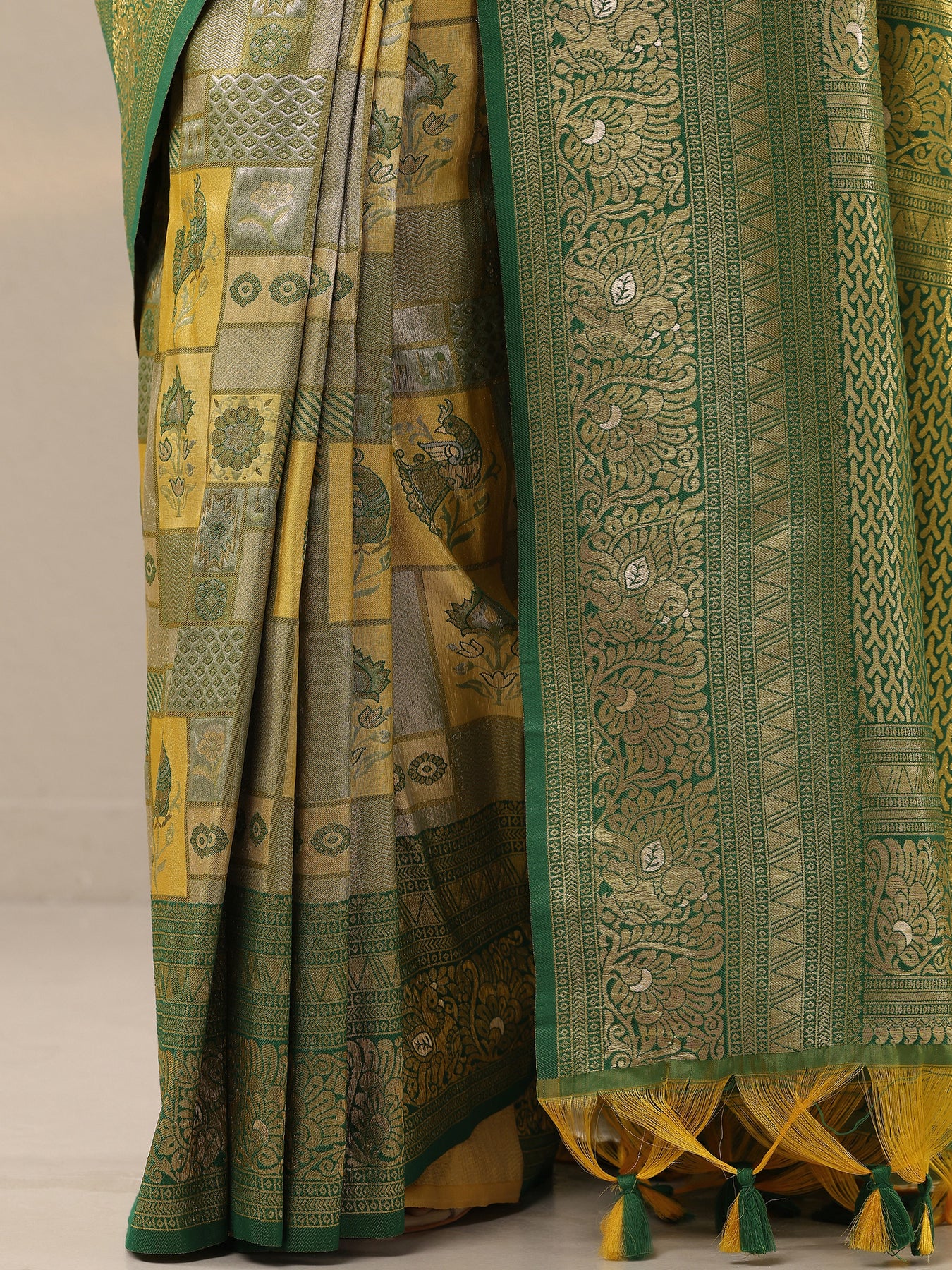 Yellow Woven Design Silk Blend Saree With Unstitched Blouse Piece