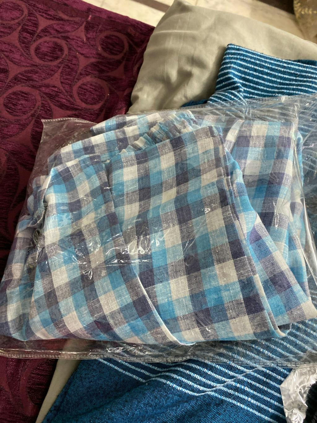 Blue Checkered Cotton Trousers - ShopLibas