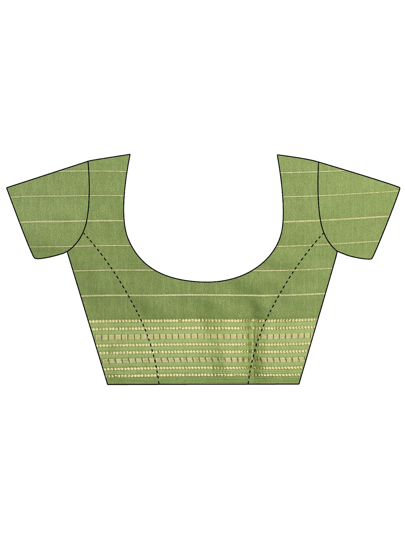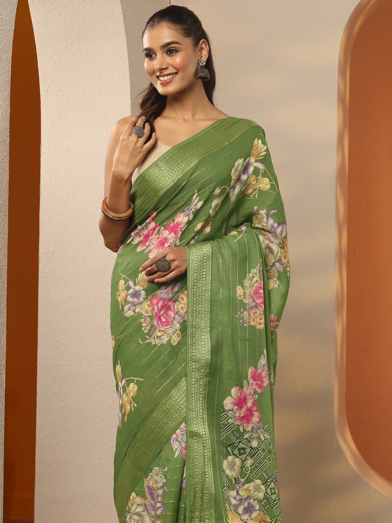 Green Printed Silk Blend Saree With Unstitched Blouse Piece