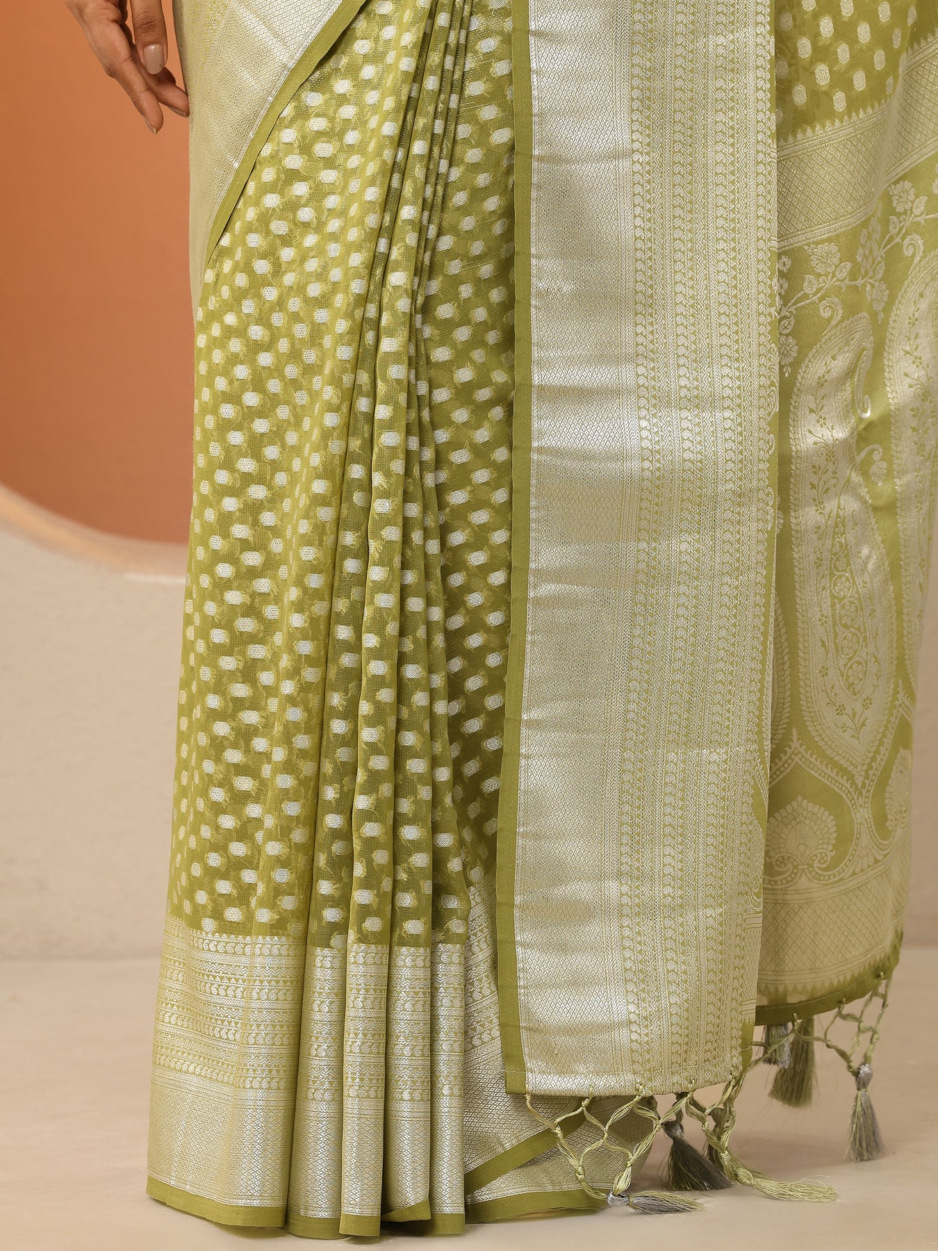 Green Woven Design Pure Georgette Saree With Unstitched Blouse Piece