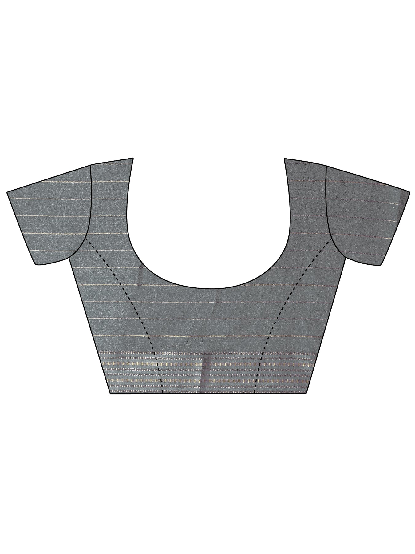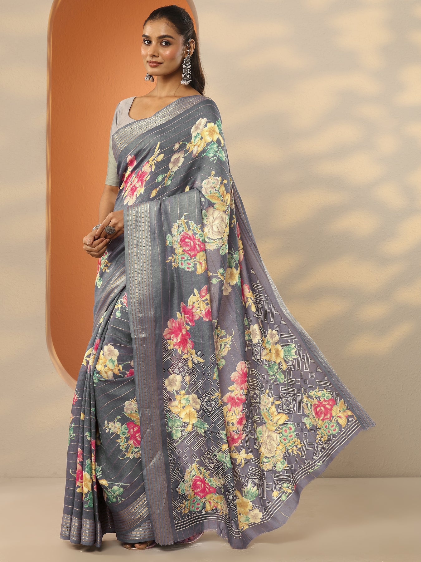 Grey Printed Silk Blend Saree With Unstitched Blouse Piece
