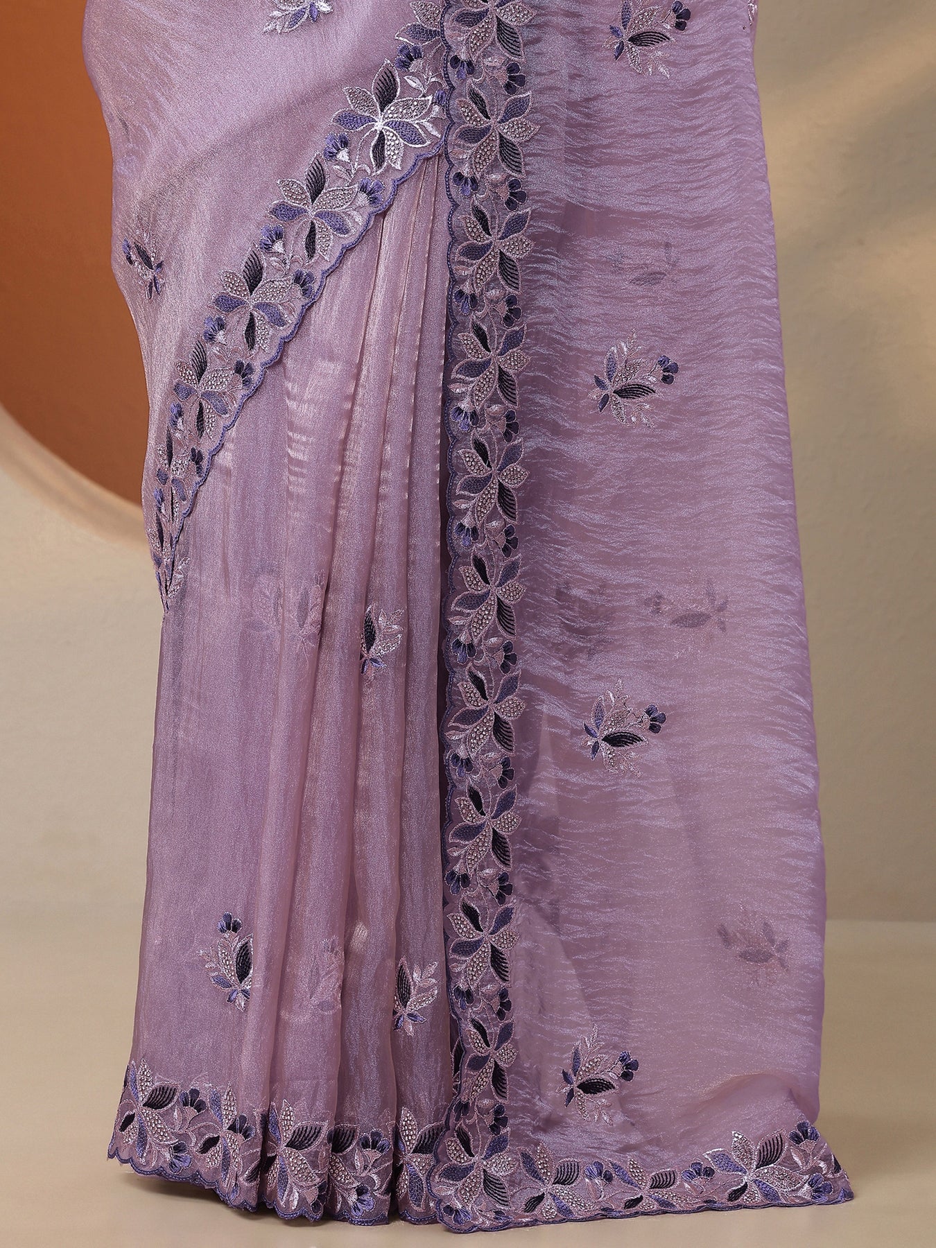 Lavender Embroidered Organza Saree With Unstitched Blouse Piece