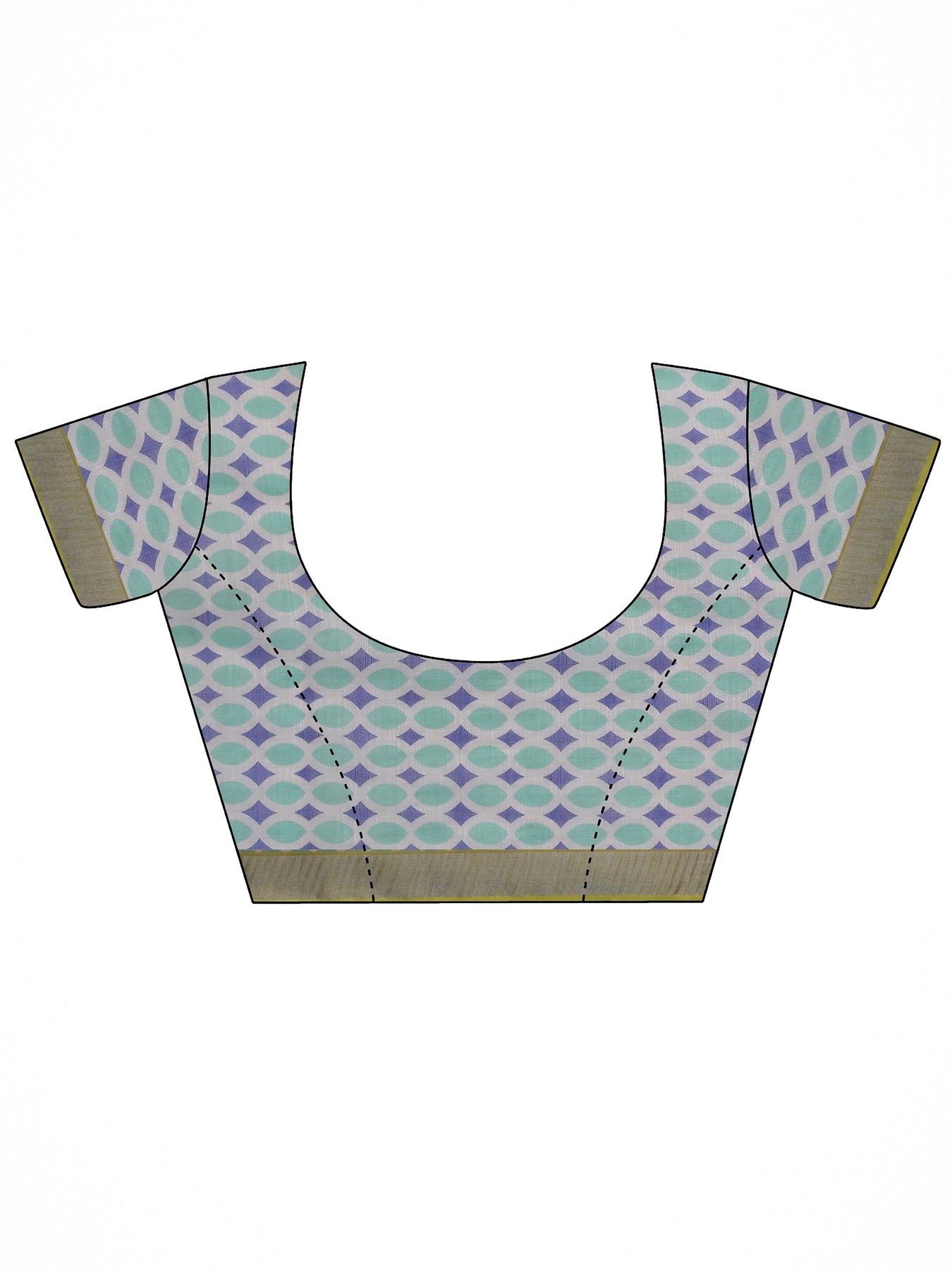 White Printed Cotton Blend Saree With Unstitched Blouse Piece