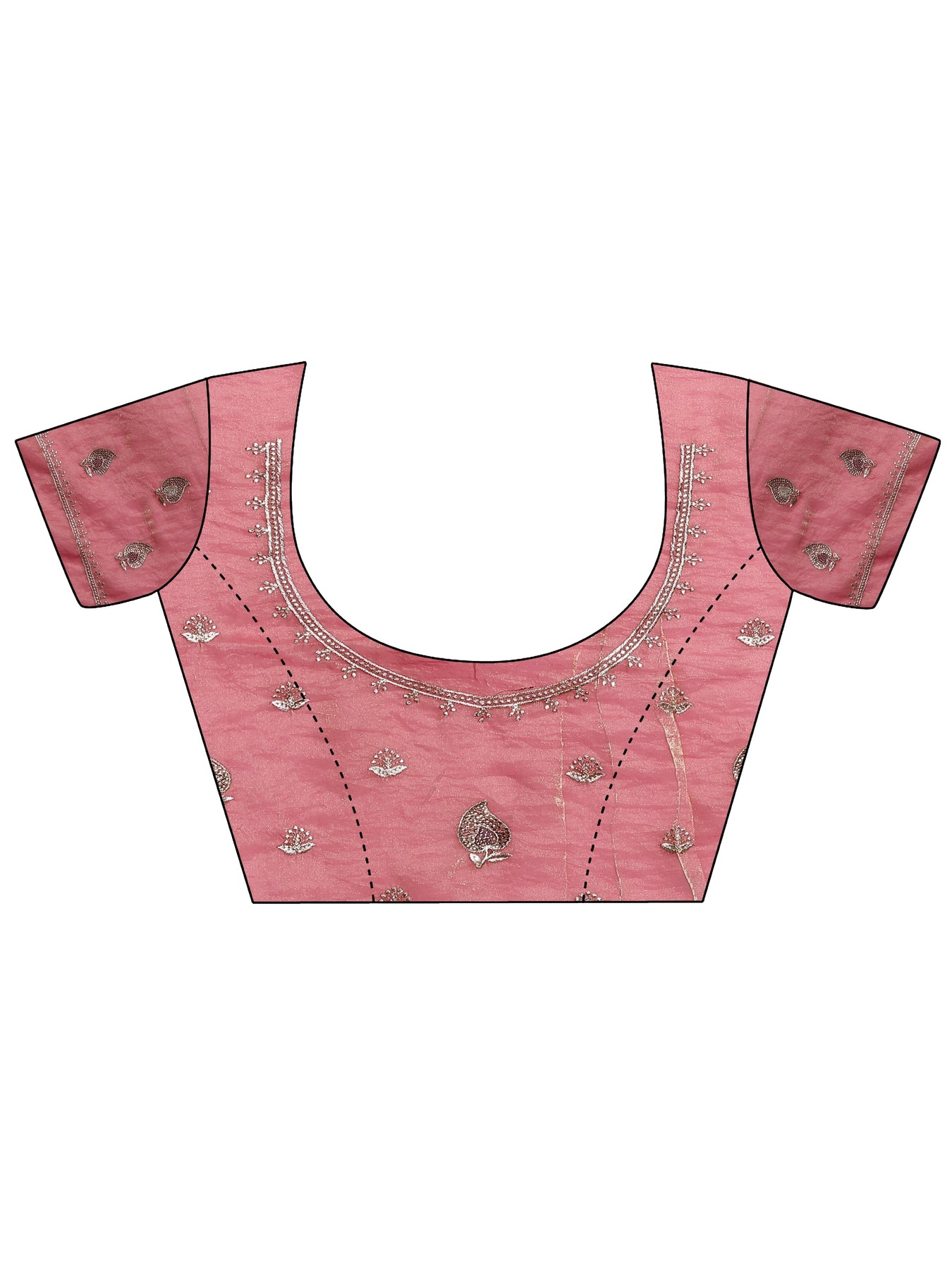 Our pink silk blend saree features captivating embellishments. Complemented with a Unstitched blouse. This charming saree is perfect for festive occasions.