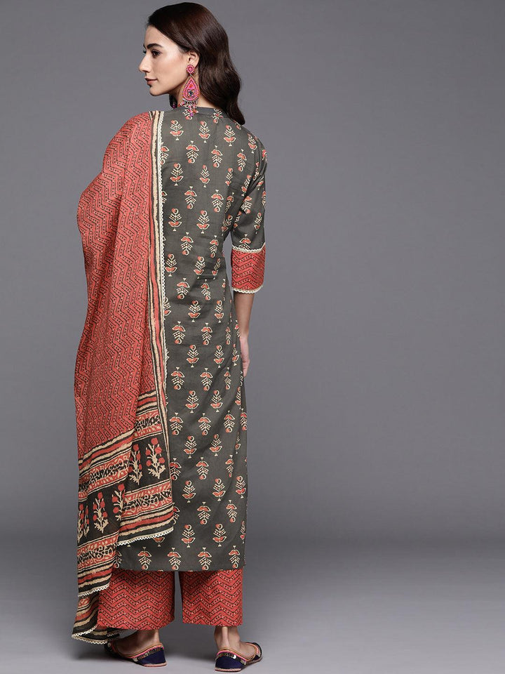 Charcoal Printed Cotton Suit Set - ShopLibas