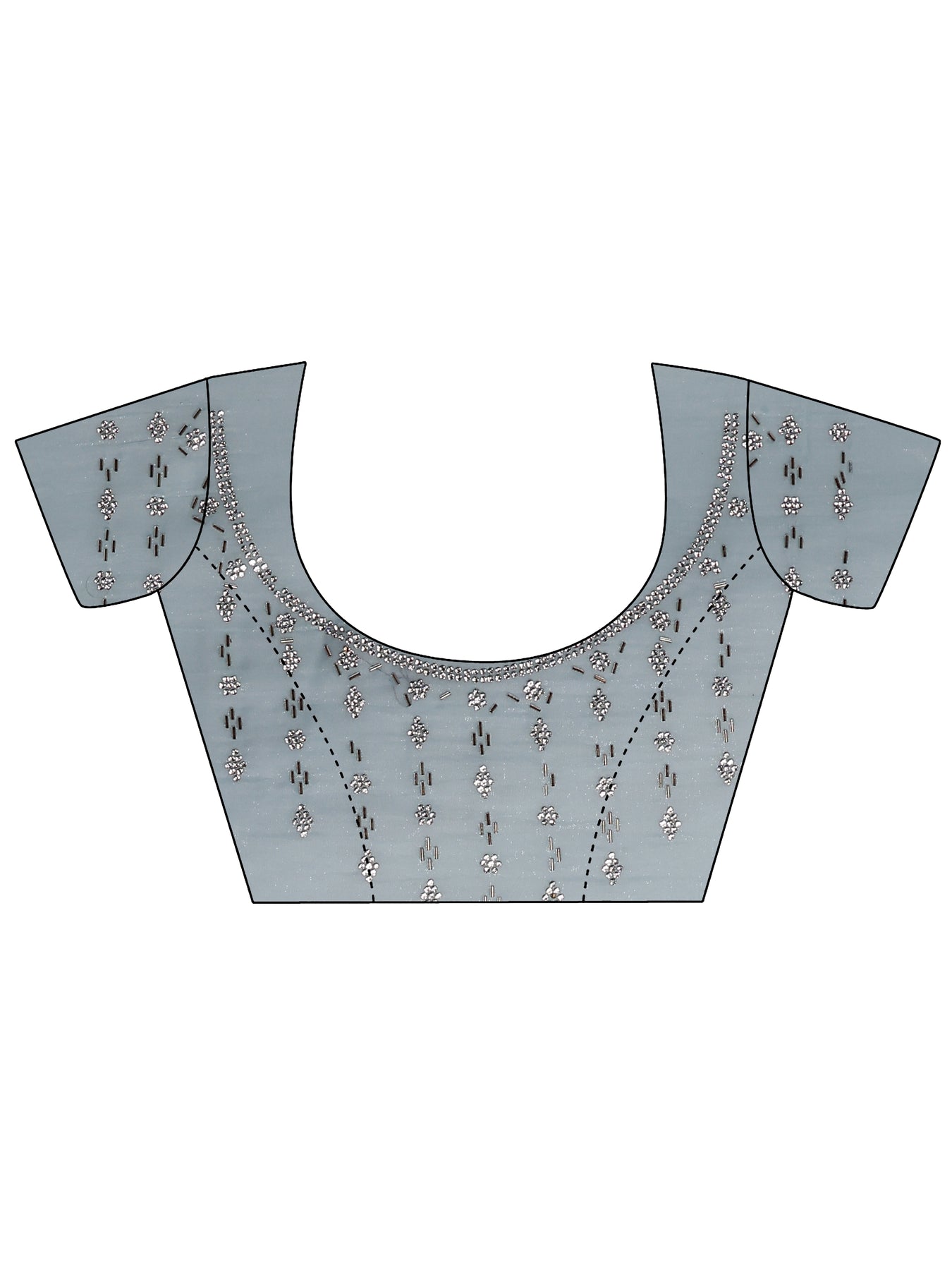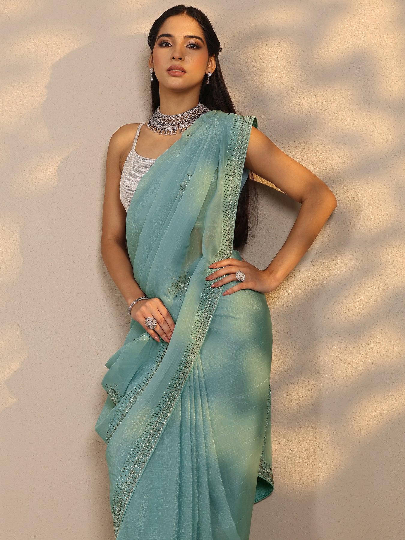 Blue Embellished Silk Blend Saree With Unstitched Blouse Piece