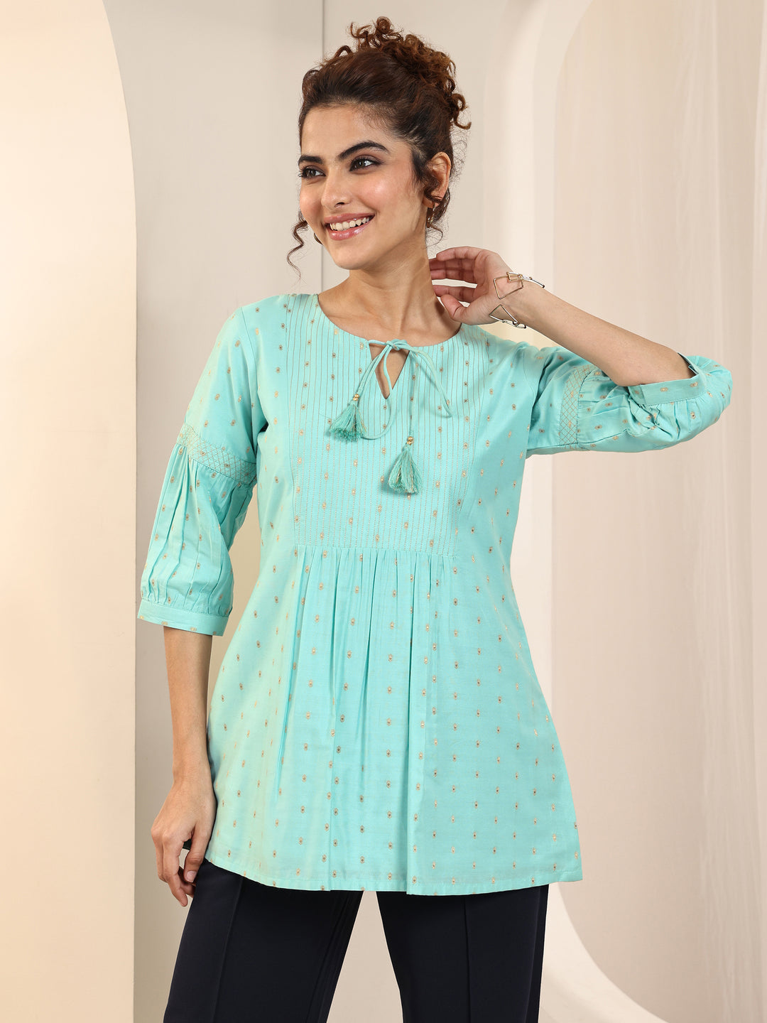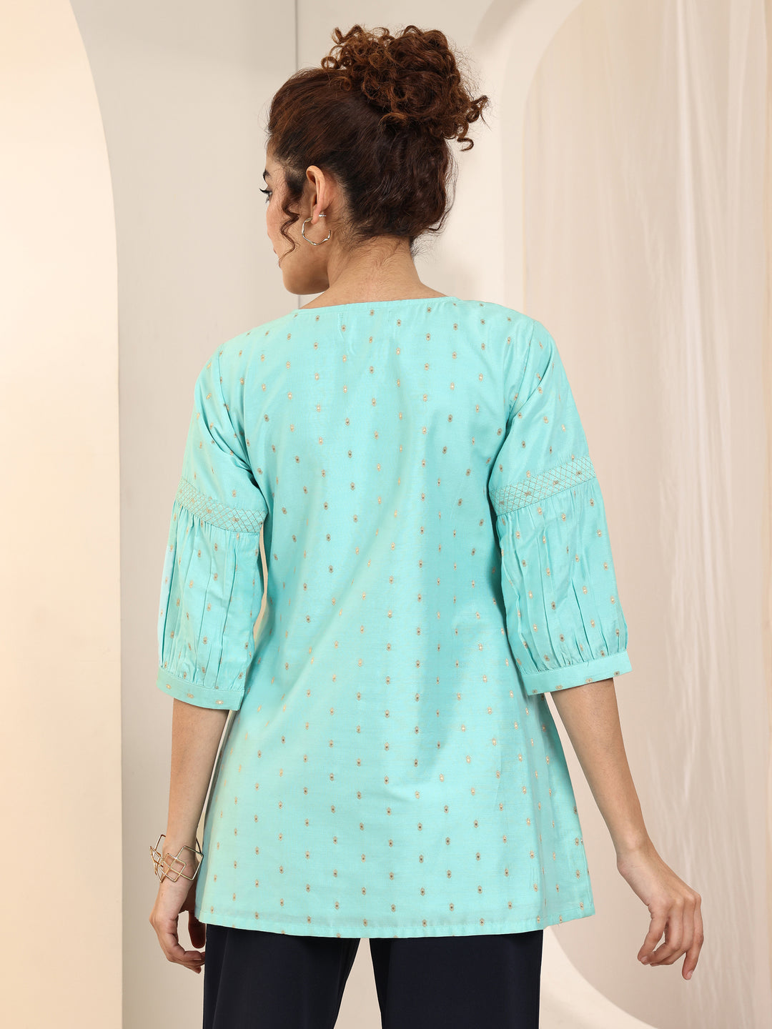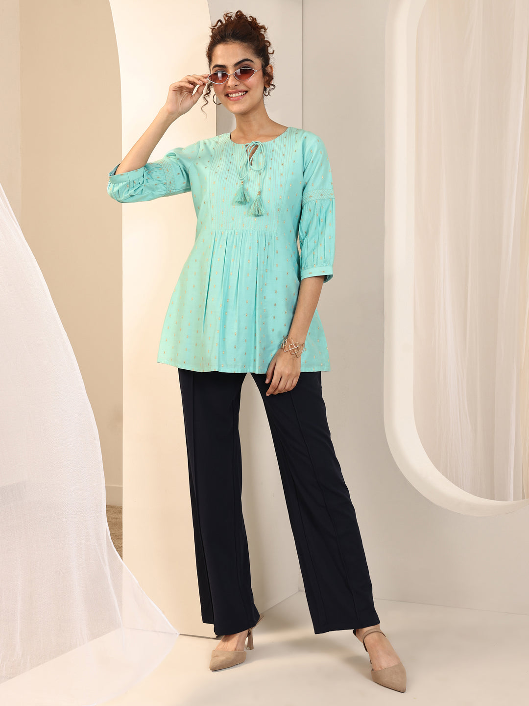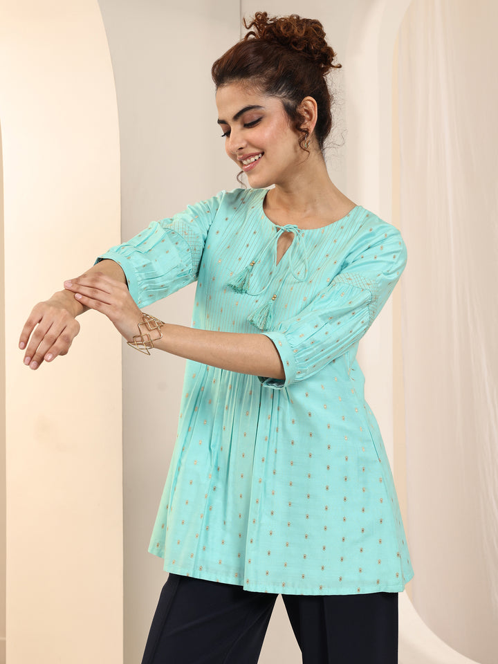 Blue Woven Design Silk Blend A-Line Short Kurti