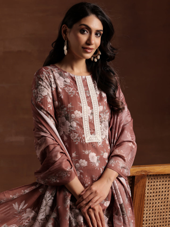 Brown Printed Cotton Straight Suit With Dupatta