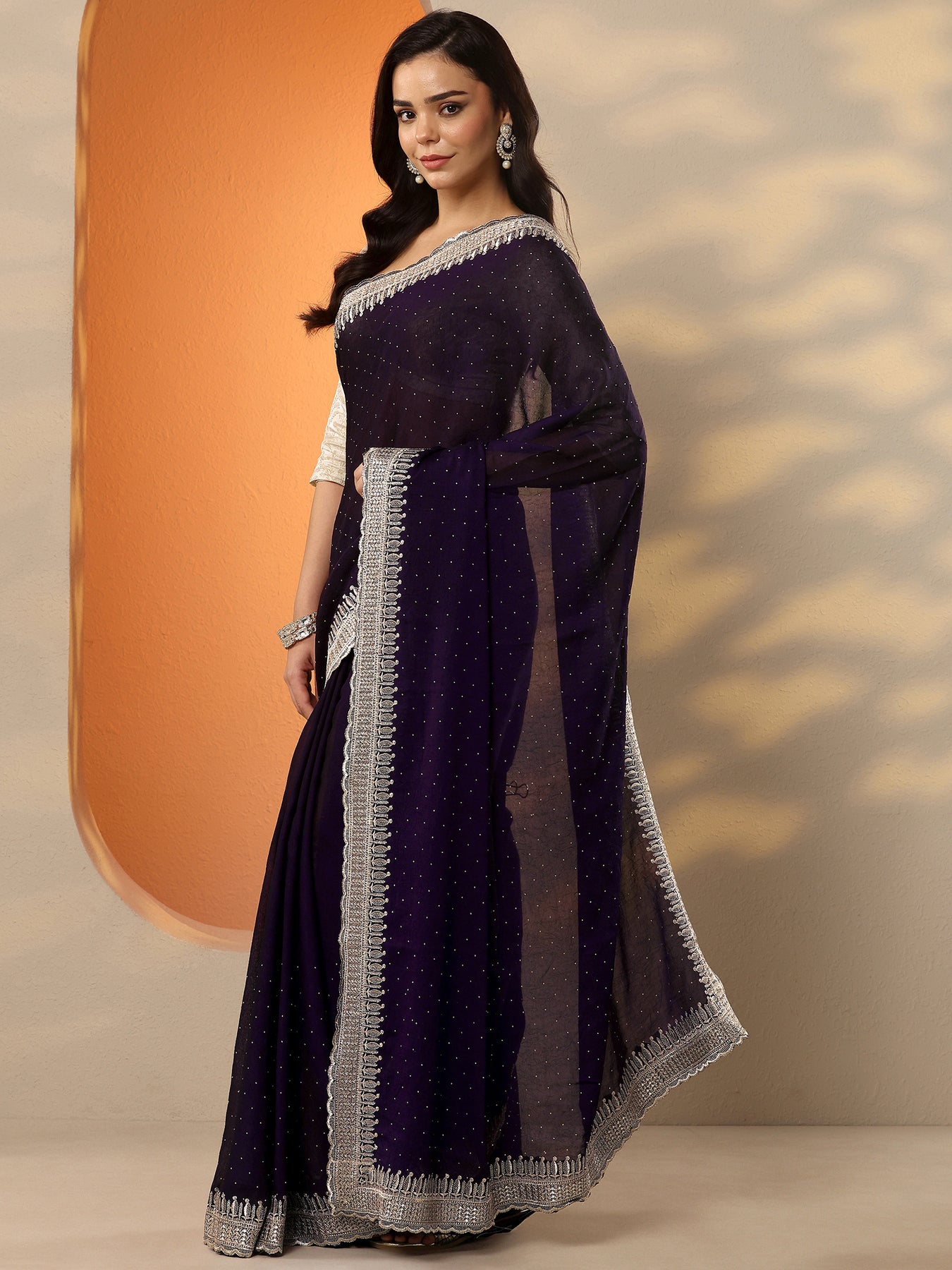 Burgundy Embellished Organza Saree With Unstitched Blouse Piece
