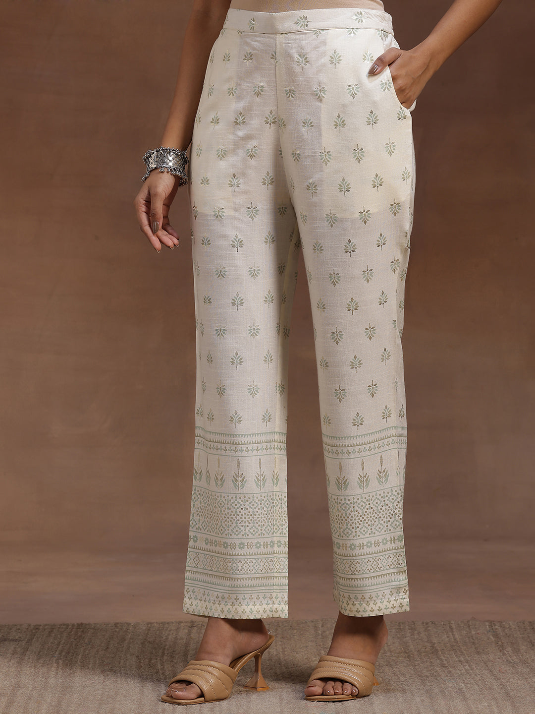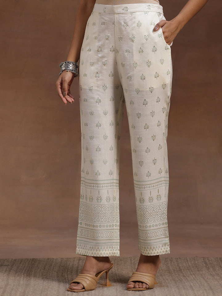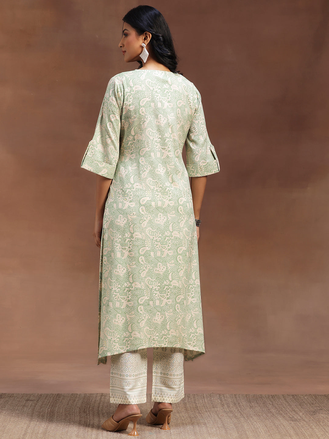 Green Printed Cotton Blend Straight Kurta With Palazzos