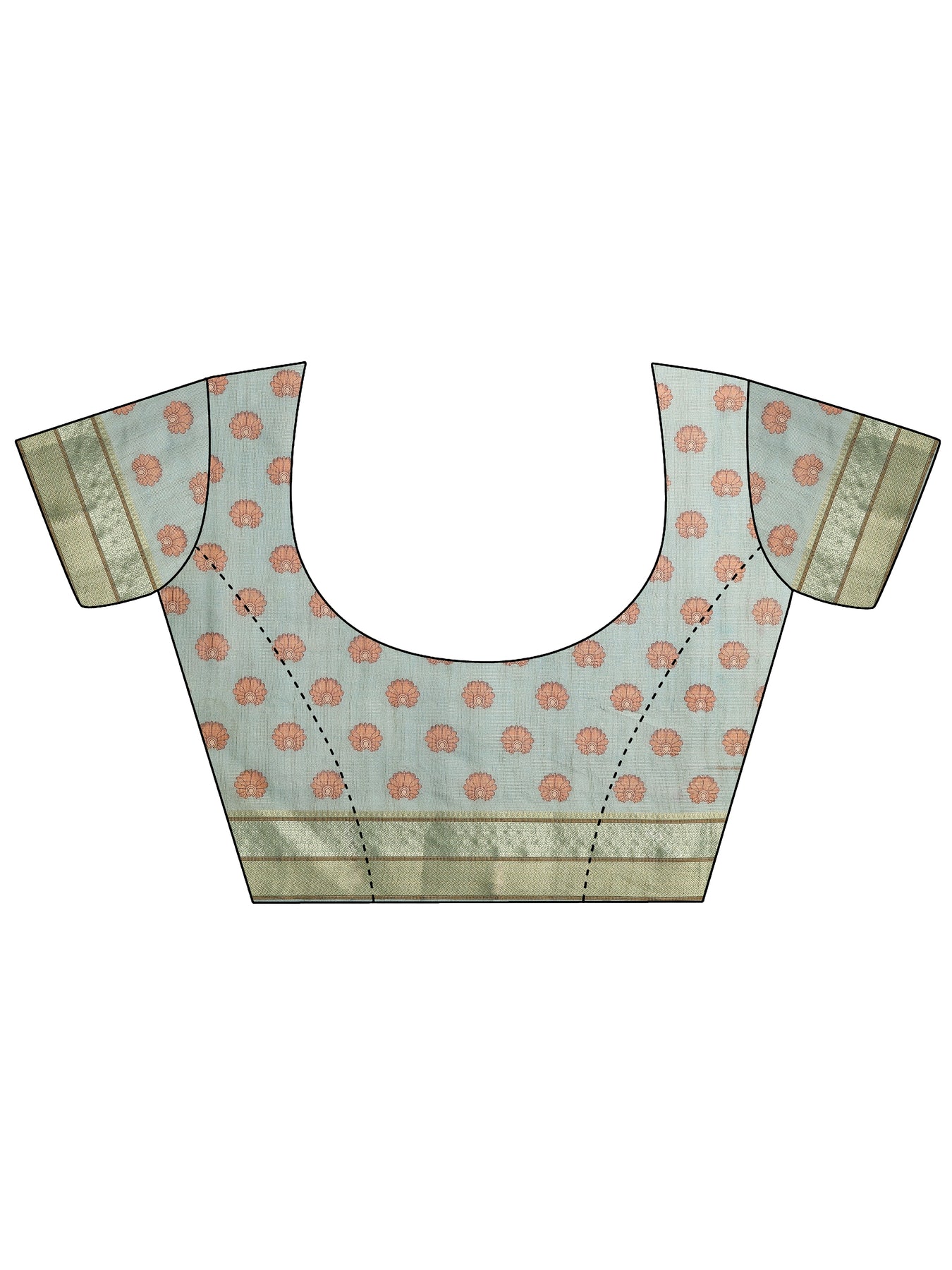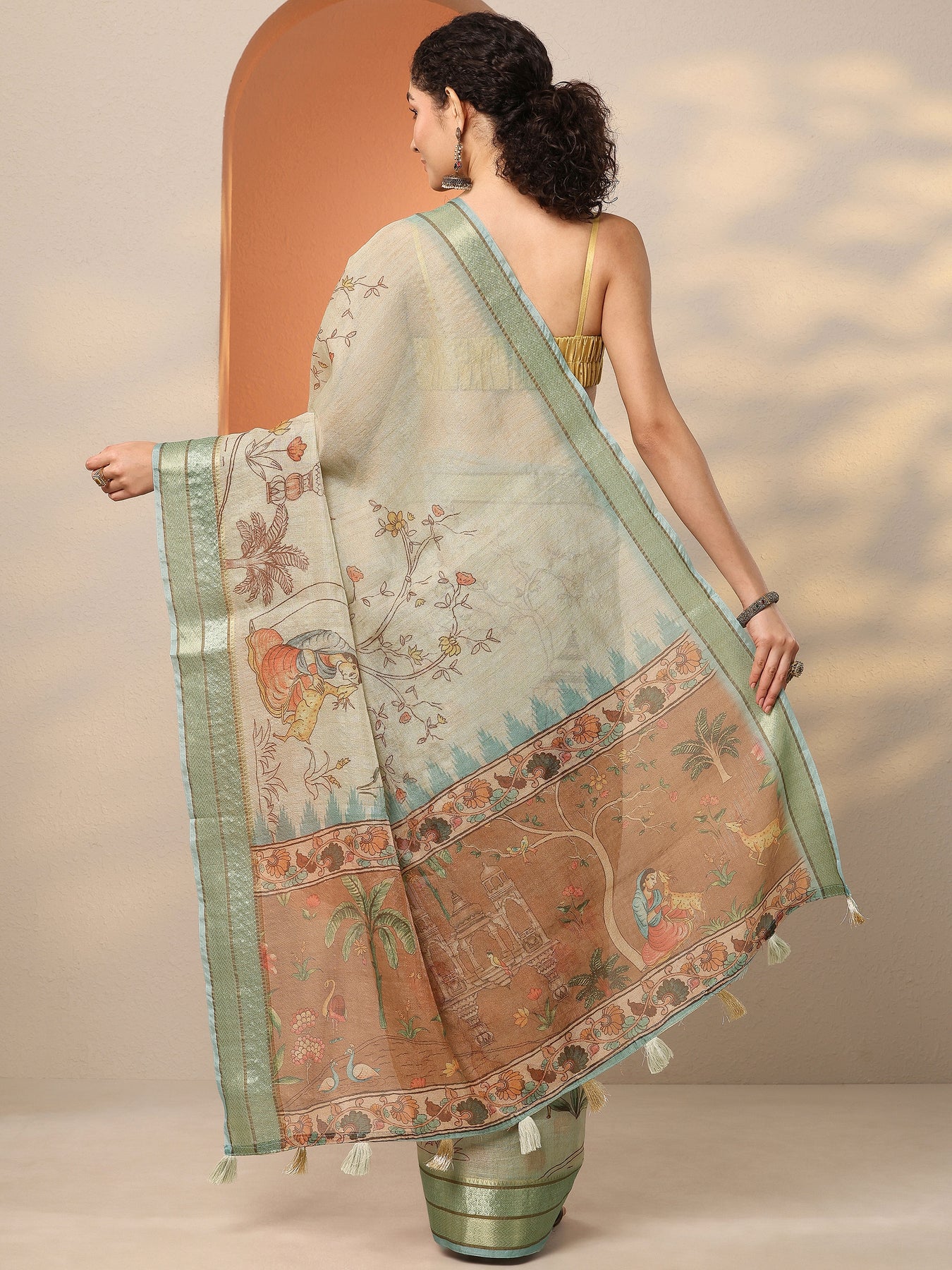 Green Printed Silk Blend Saree With Unstitched Blouse Piece
