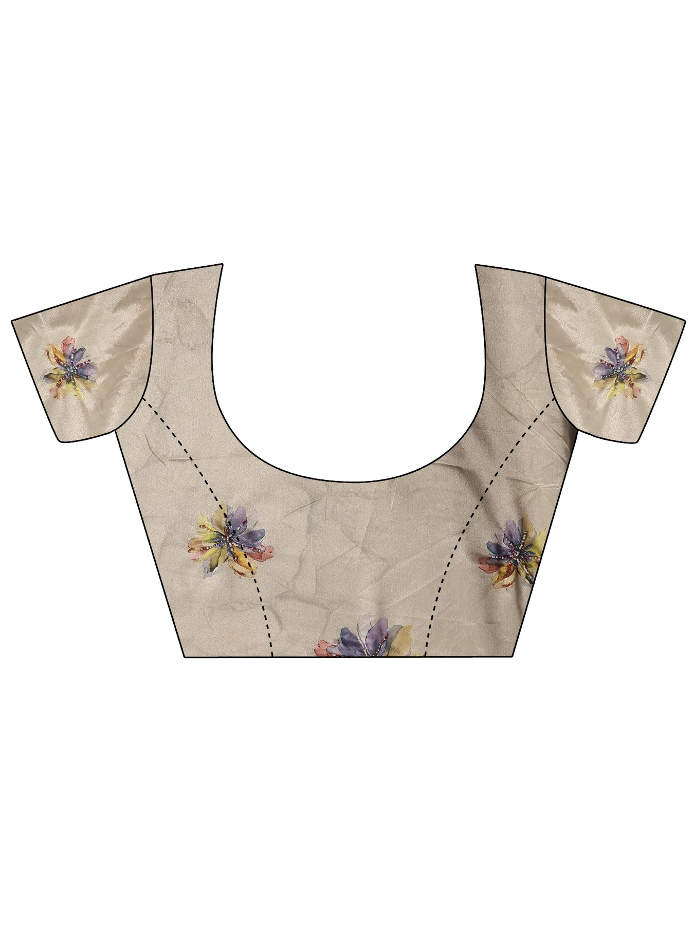 Our Off White printed Silk blend saree features captivating floral print. Complemented with a Unstitched Blouse. This charming saree is perfect for festive occasions.