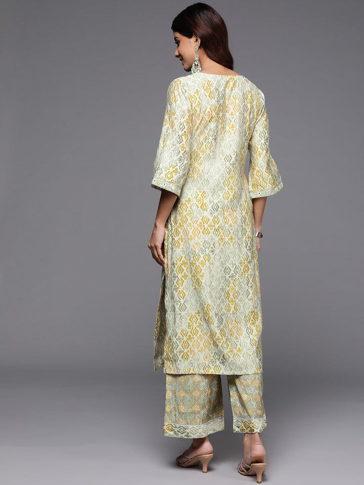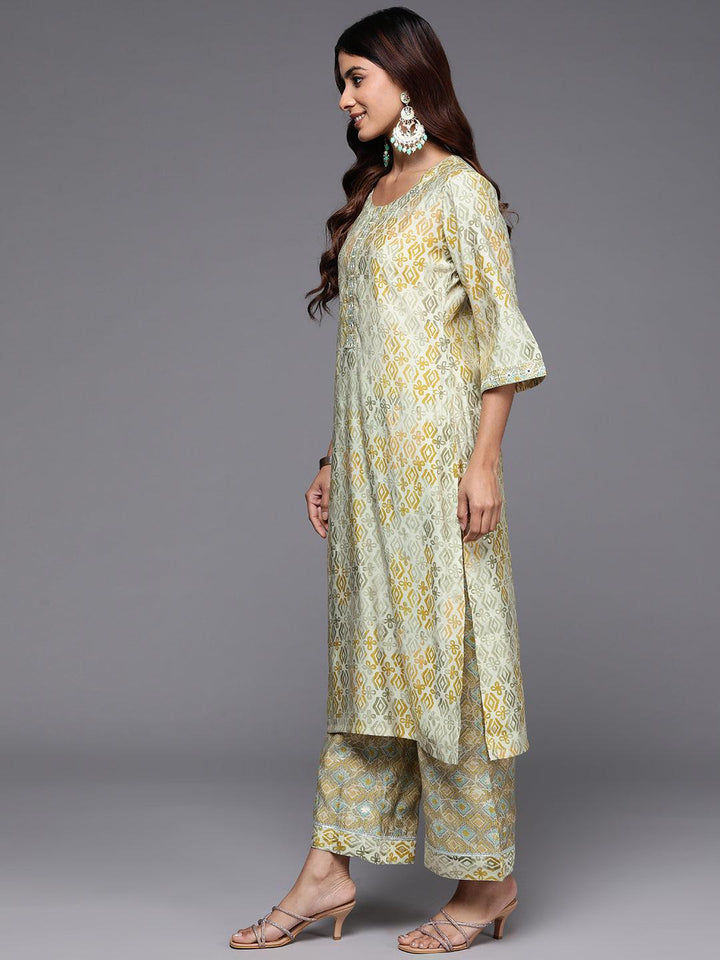 Green Printed Silk Blend Straight Kurta With Palazzos - ShopLibas