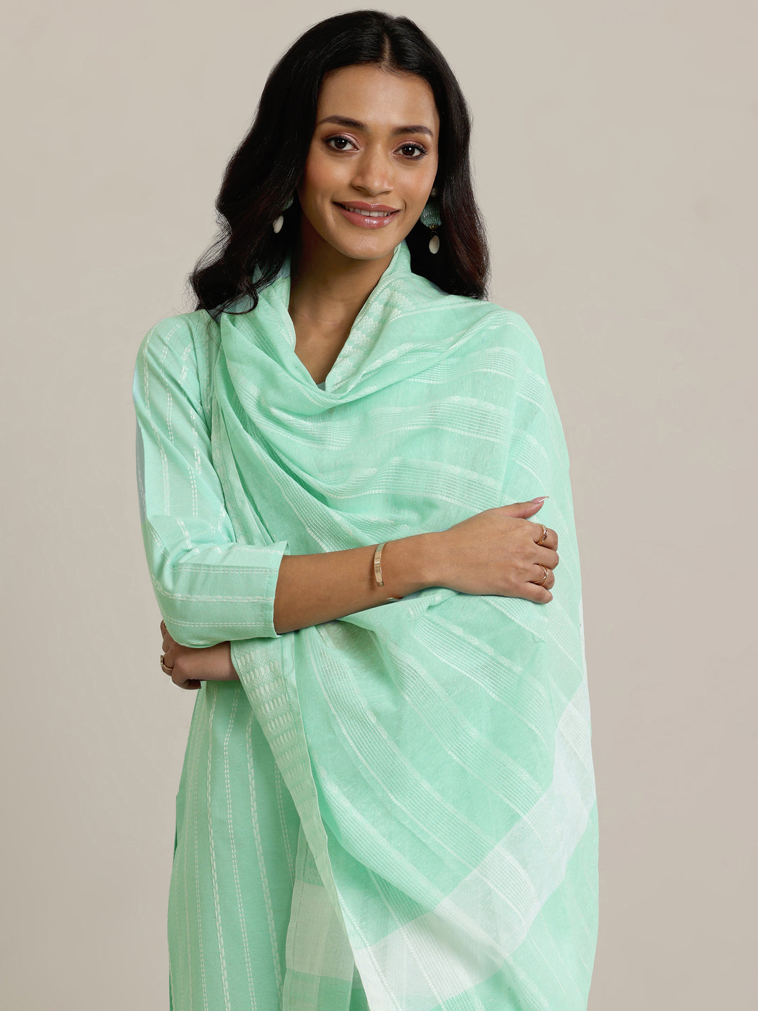 Green Woven Design Cotton Blend Straight  Suits With Dupatta