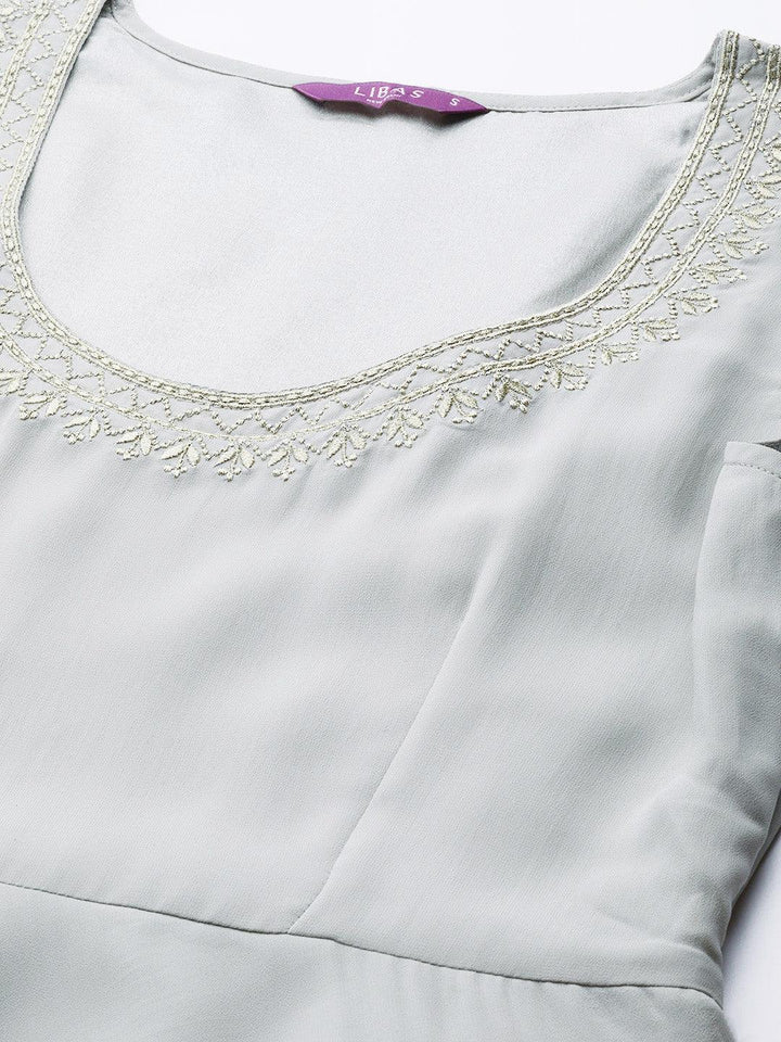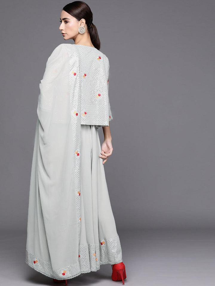 Grey Embellished Georgette Jacket Dress With Dupatta