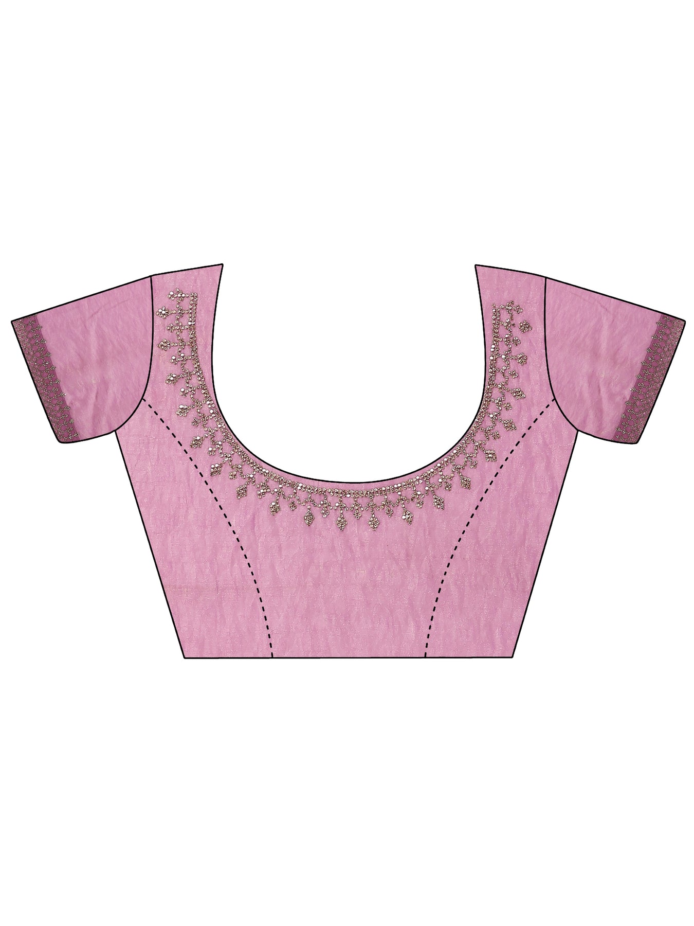 Lavender Embellished Chiffon Sarees With Unstitched Blouse Piece