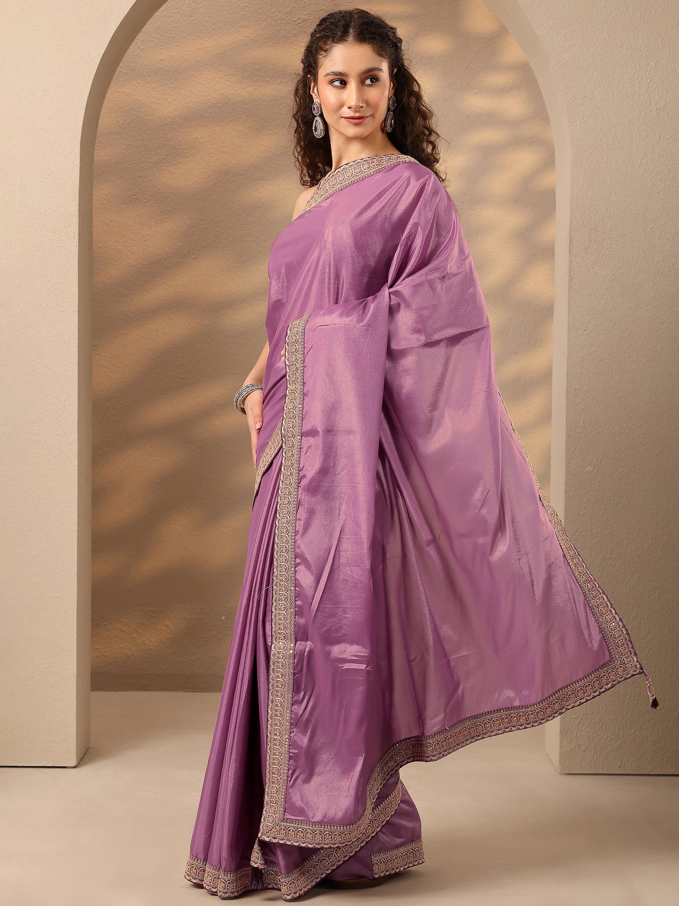 Our Lavender Solid Sarees Silk Blend Saree Features Captivating Solid. Complemented With An Unstitched Blouse Piece. This Charming Saree Is Perfect For Festive Occasions.