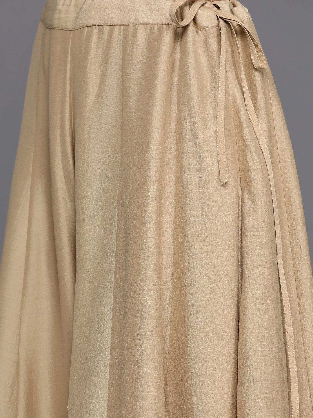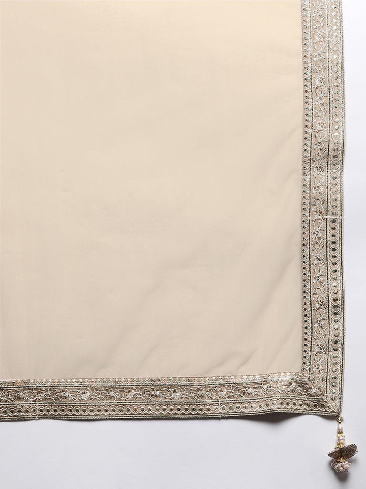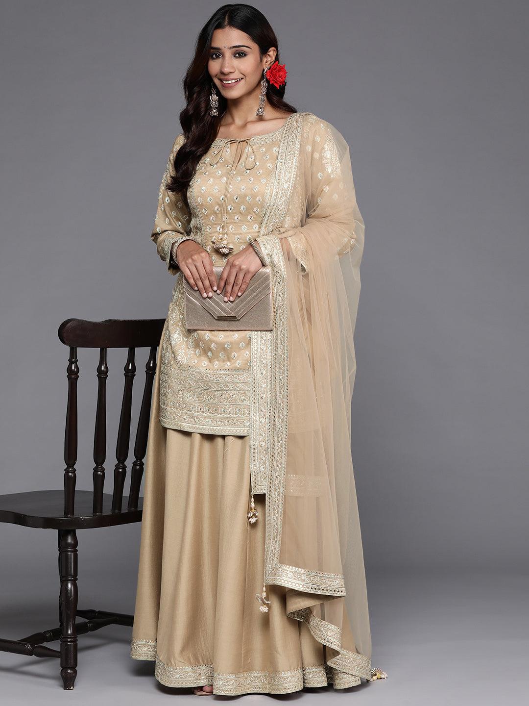 Libas Art Beige Embroidered Silk Straight Suit Set