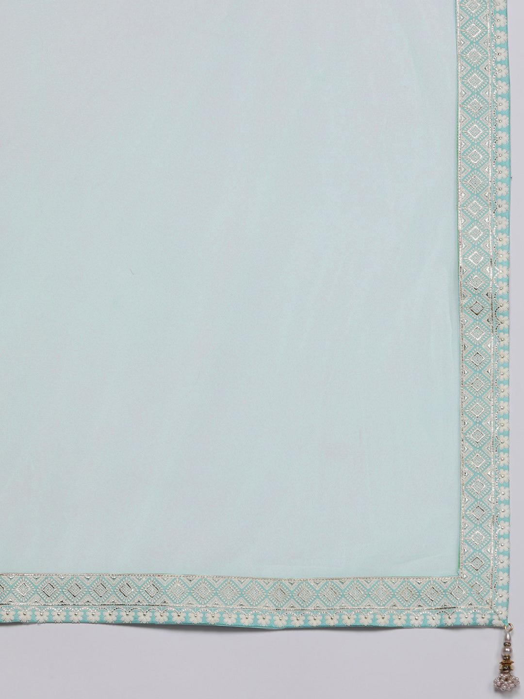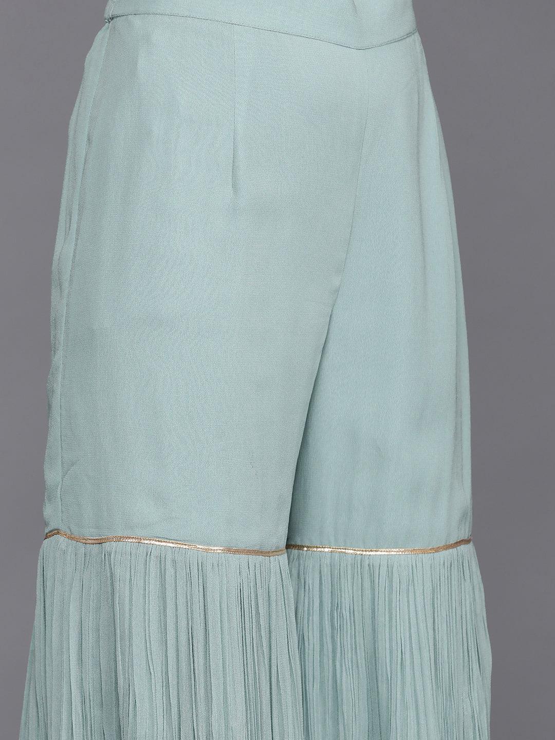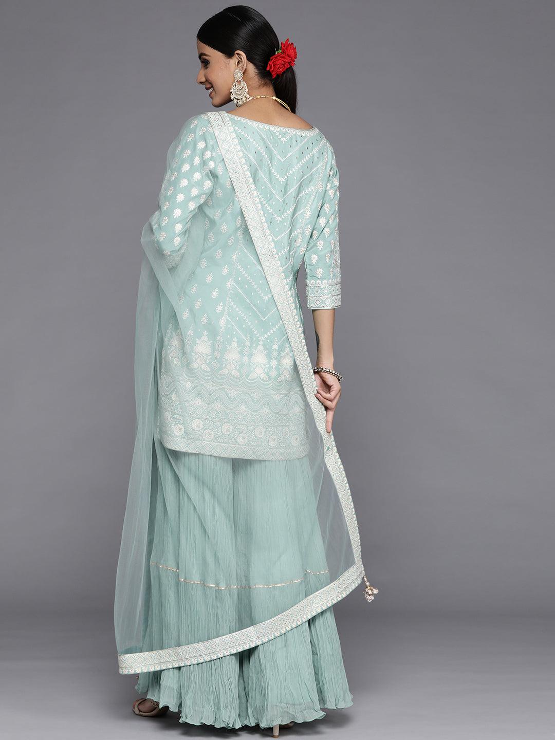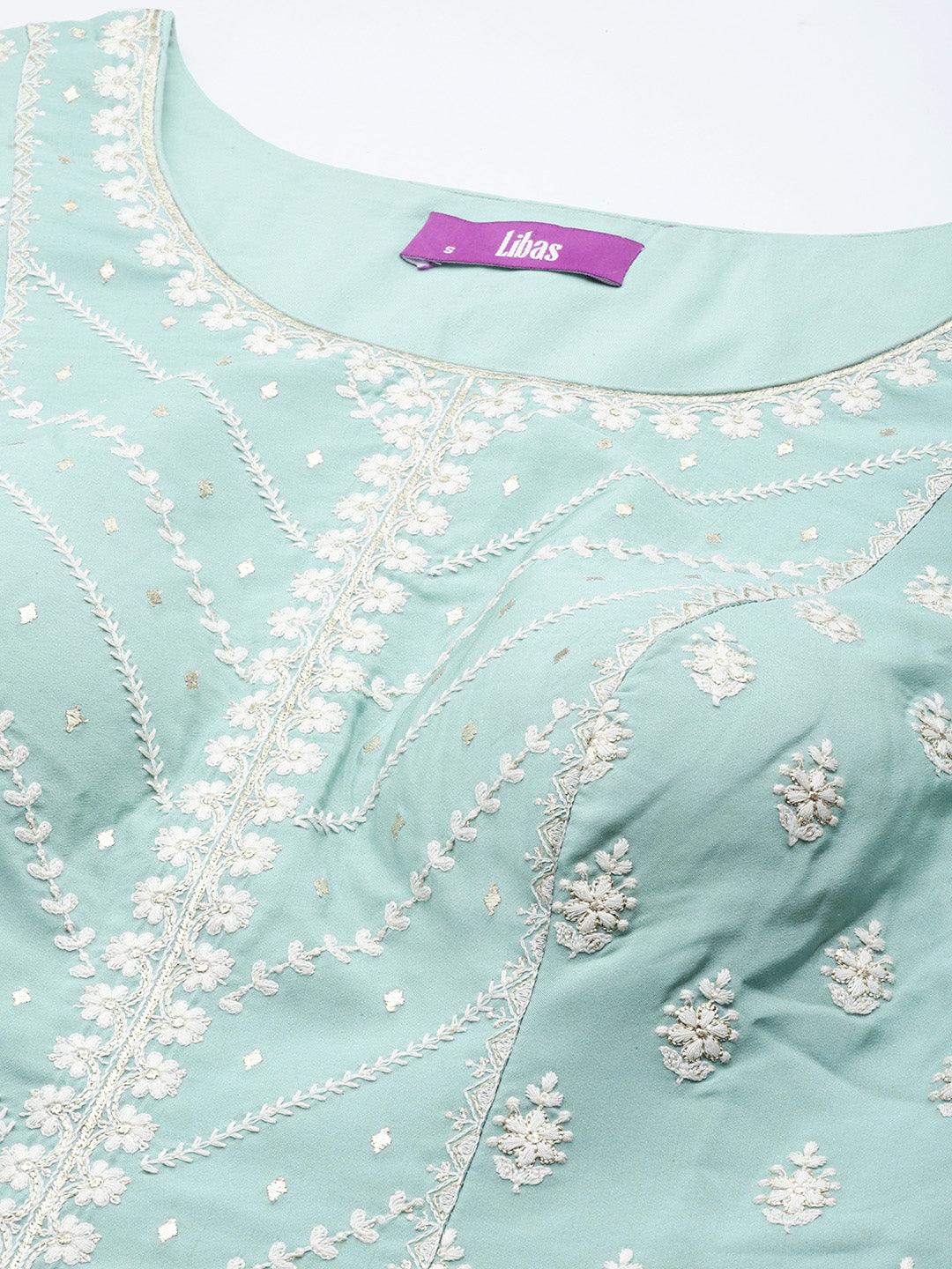 Libas Art Sea Green Embroidered Silk Straight Suit Set