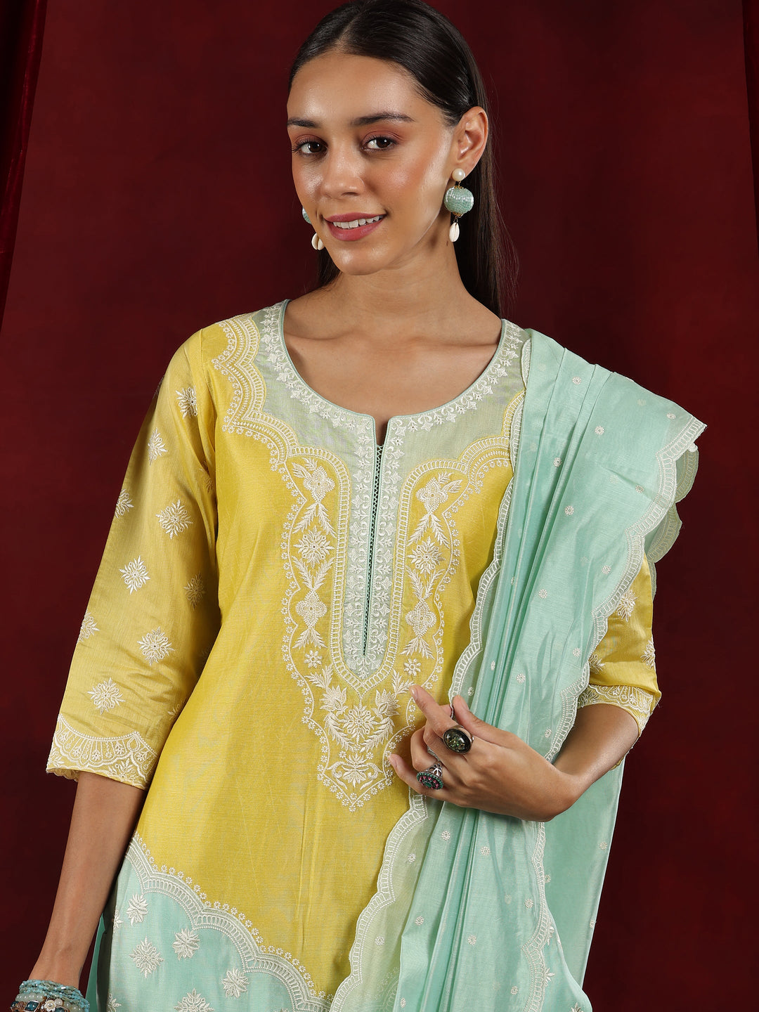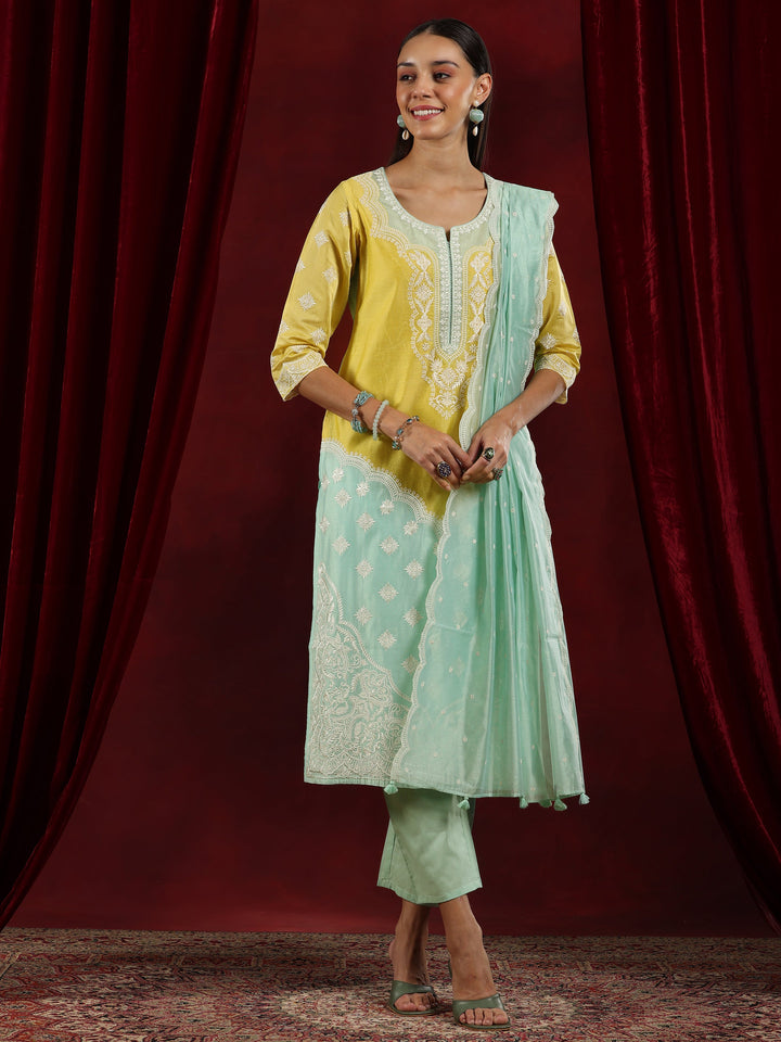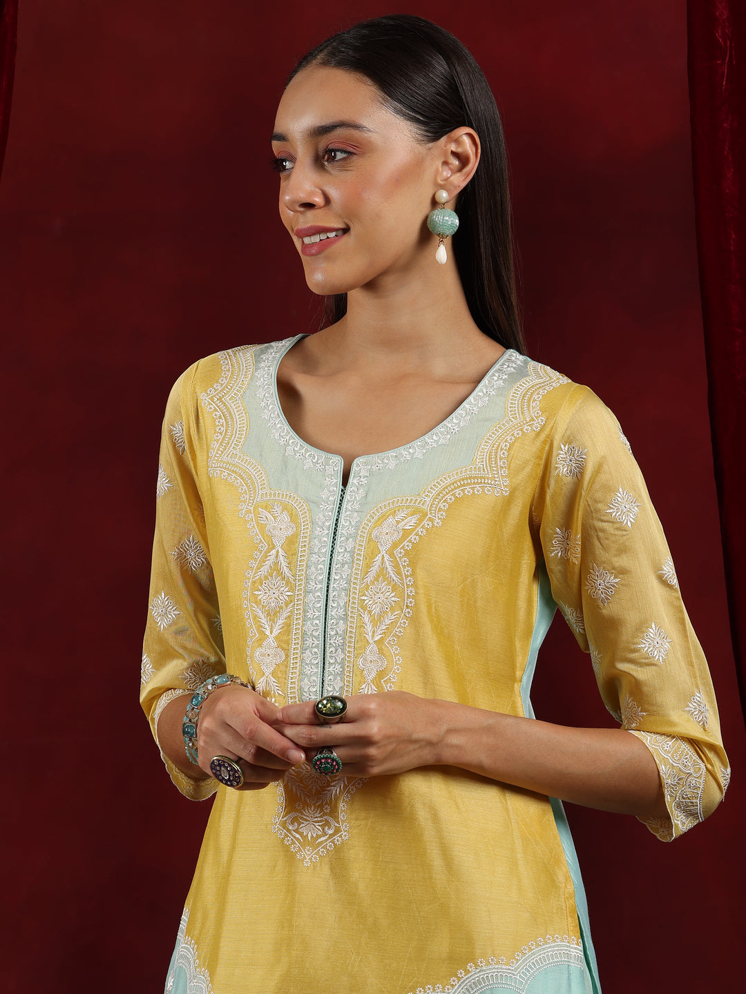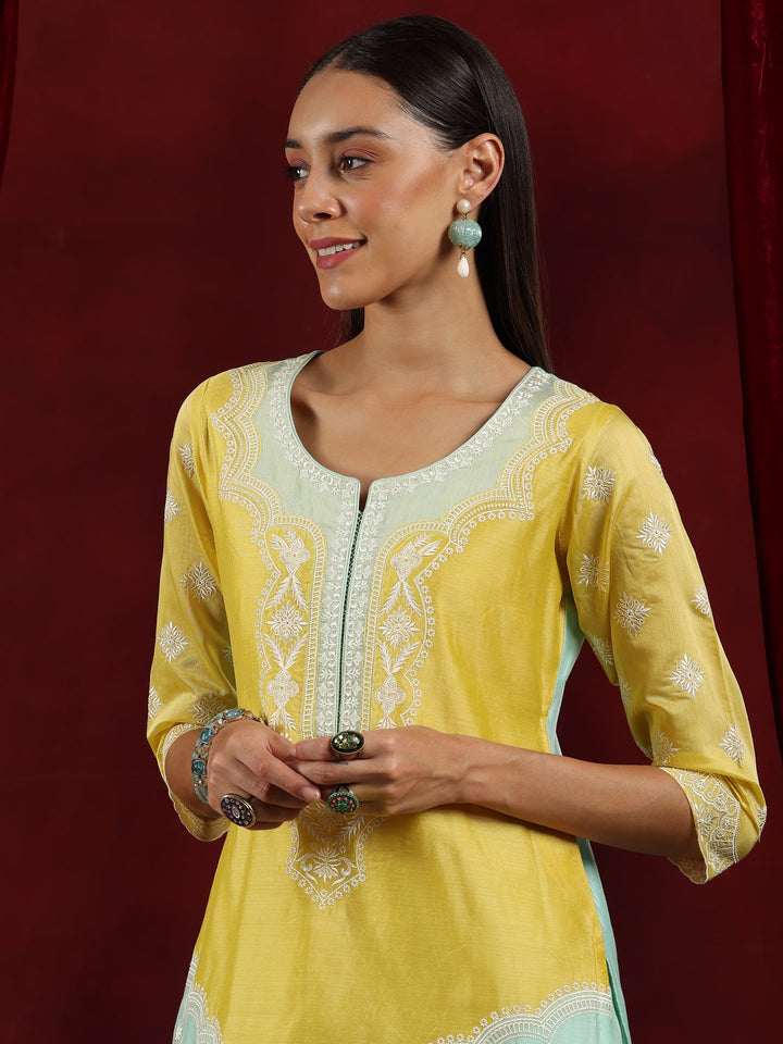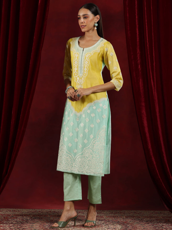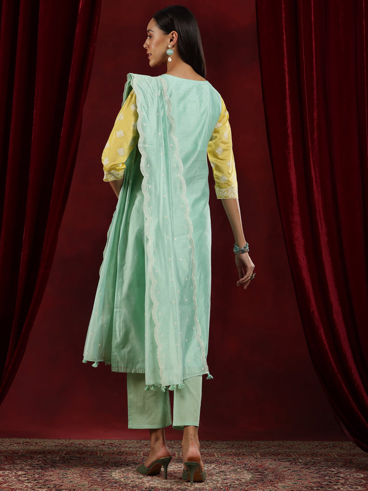 Libas Art Sea Green Yoke Design Chanderi Silk Straight Suit With Dupatta