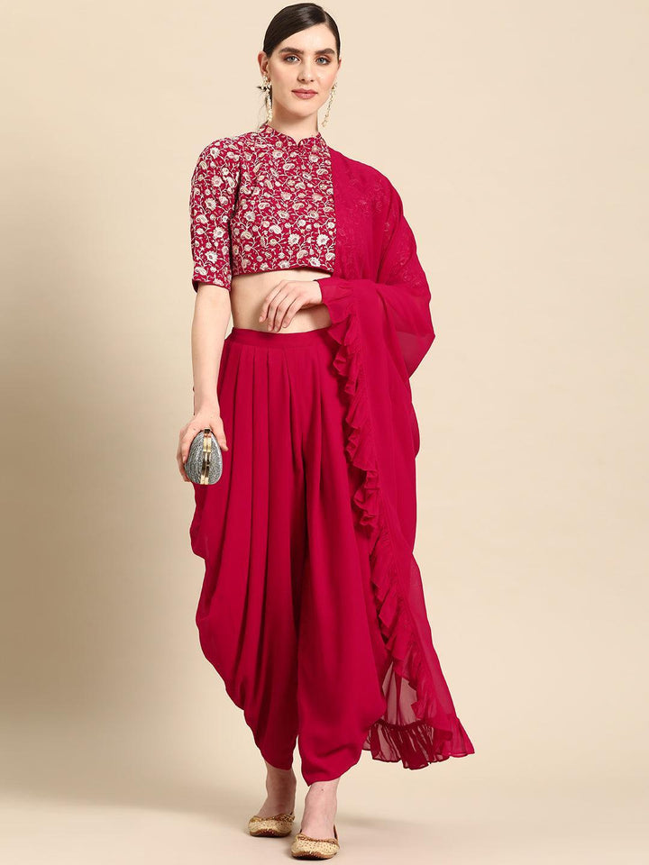 Magenta Embroidered Georgette Dhoti Saree - Libas