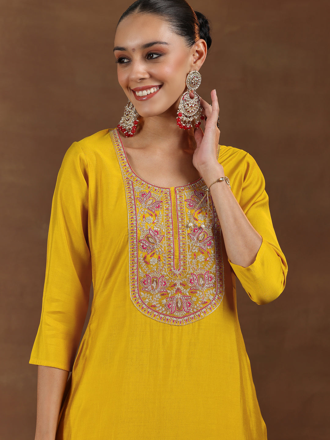 Mustard Yoke Design Silk Blend Straight Suit With Dupatta