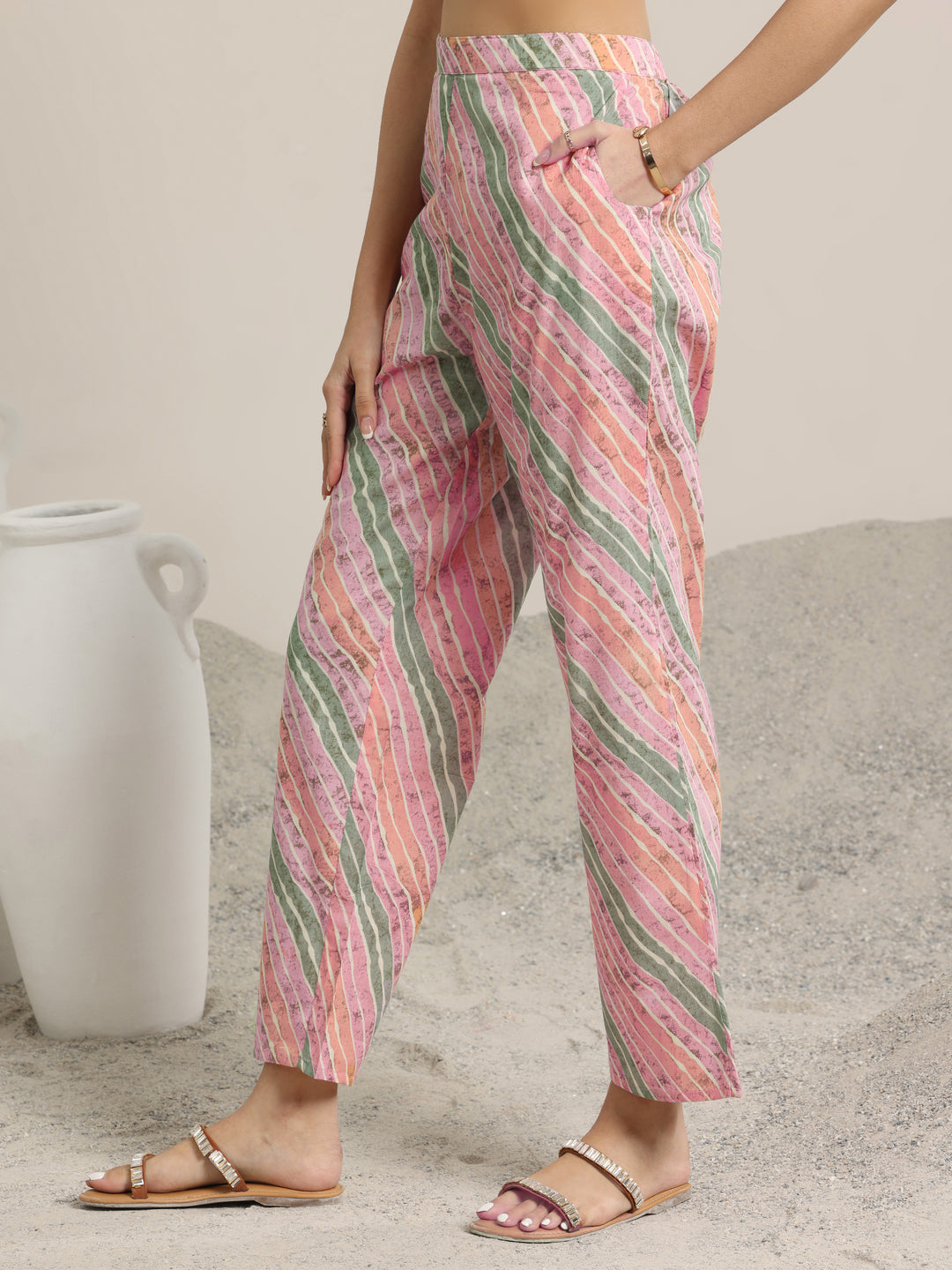 Our 3-piece off white printed cotton Anarkali suit set features a flared kurta with a panelled V-neckline and three-quarter sleeves. Complemented with trousers with a partially elasticated waistband and roomy pockets and a dupatta. Highlighted with floral prints and lace detailing, this style is perfect for casual outings.