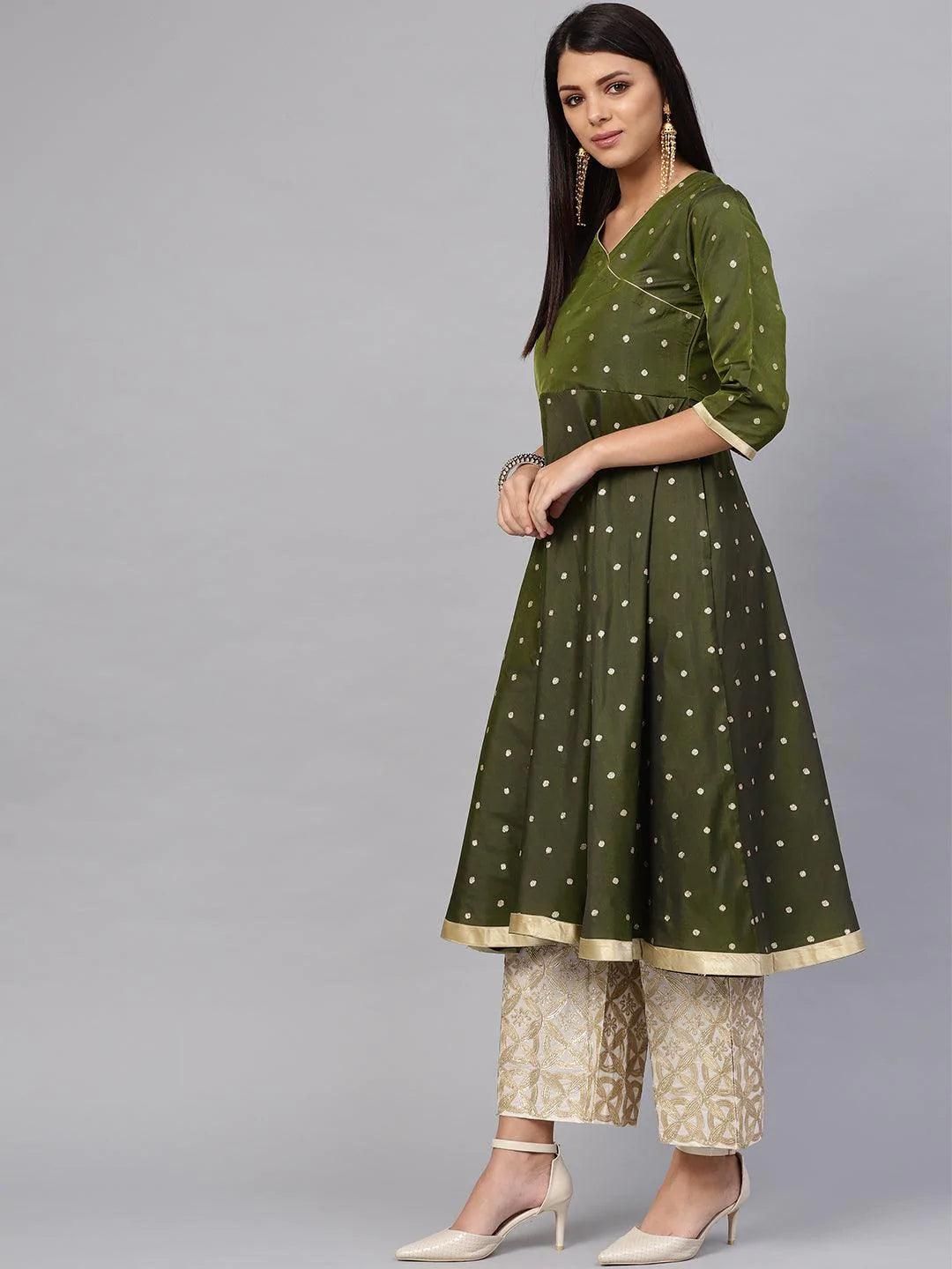 Olive Green Chanderi Aline Kurta With Gota Palazzo