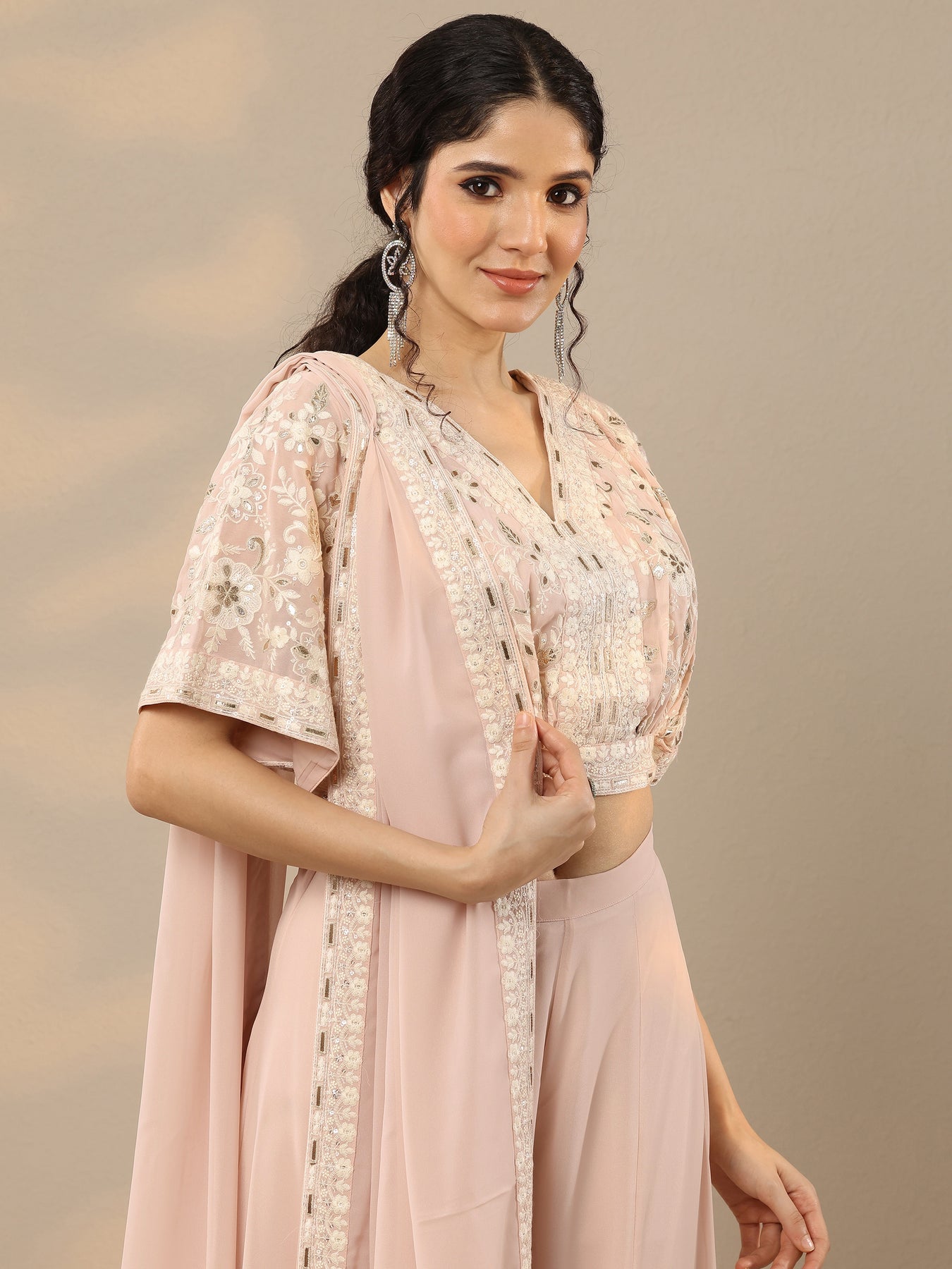 Libas Art Pink Embroidered Georgette 3 Piece Co-Ords