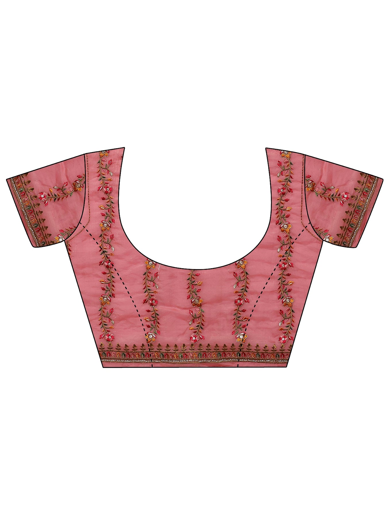 Pink Embroidered Organza Saree With Unstitched Blouse Piece